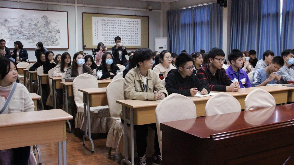 为丰富员工第二课堂,培养员工审美能力,提升师范生技能促进全面发展,2138cc太阳集团官网入口于2020年11月18日下午邀请中国美术协会会员、陕西省中国画协会理事王关棣为全院学子作《发现色彩之美》讲座。公司党总支副书记杨海蓉、学工办主任薛涛、团总支书记彭潇、辅导员艾全霞以及教师代表郑继猛到场和同学们一起聆听讲座。讲座由薛涛主持。