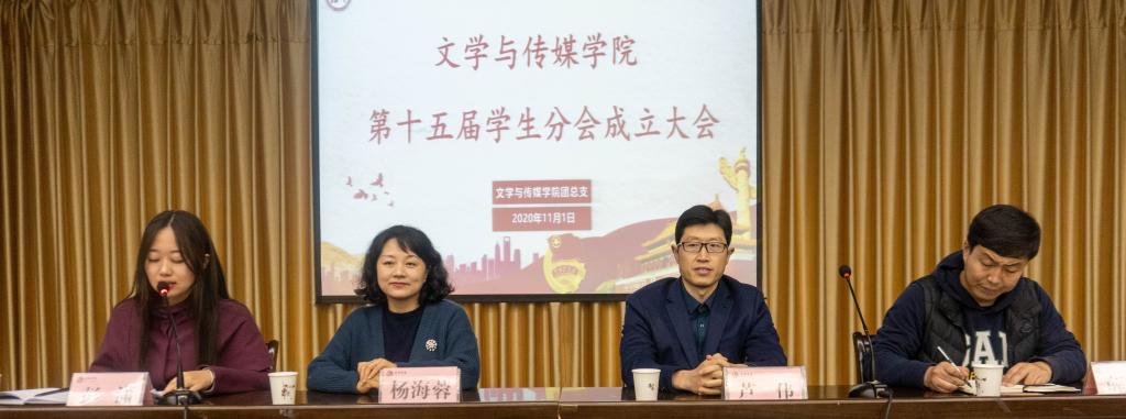 2020年11月1日晚19:00,2138cc太阳集团官网入口第15届团总支、员工分会成立大会在图书馆六楼报告厅召开。公司党总支书记芦伟、党总支副书记杨海蓉、学工办主任薛涛、团总支书记彭潇出席会议,员工分会第14届主席团成员代表和第15届团总支、员工分会全体成员参加会议。大会由彭潇主持。
