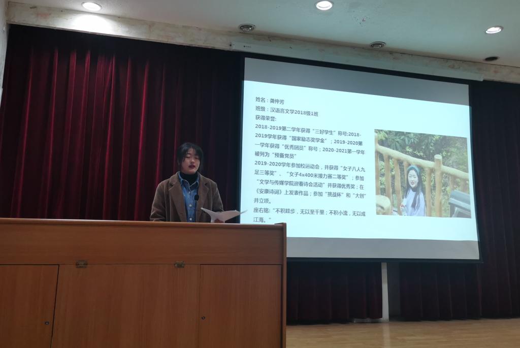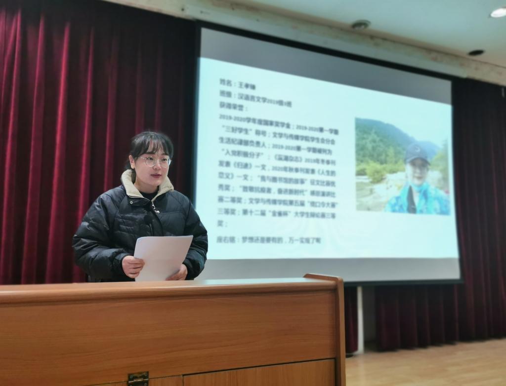 为进一步宣传国家资助政策及育人成效,引导激励广大受资助员工奋发图强,2138cc太阳集团官网入口于12月20日晚19:30在一号楼六楼报告厅召开学风建设暨期末考试动员大会,2138cc太阳集团官网入口学工办副主任薛涛,国家奖学金获奖员工王孝臻,国家励志奖学金获奖员工郭雅雯、龚仲芳和2020级全体同学参会。会议由学工办副主任薛涛主持。