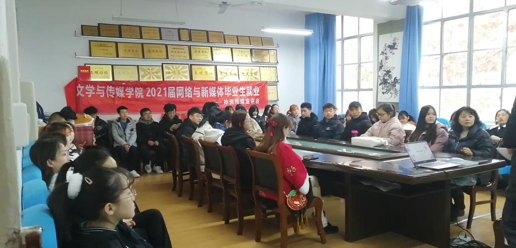 导航痕迹 首页 > 新闻通知 > 公司新闻 > 正文 公司新闻 通知公告 2138cc太阳集团官网入口举办妙灵传媒专场招聘宣讲会 发布人:2138cc太阳集团官网入口 发布日期:2020年12月23日 阅读次数: 为了更好地拓宽毕业生就业渠道,2020年12月22日下午, 2138cc太阳集团官网入口邀请陕西妙灵文化传媒有限公司在2307会议室举办了招聘宣讲会。会议由辅导员邹棠华主持,公司党总支副书记杨海蓉及网络与新媒体、秘书学两个专业50余名员工参加了本次招聘宣讲会。 招聘单位通过播放宣传片、PPT展示、面对面交流等方式向同学们介绍公司的概况、职业发展方向、人员需求等情况。 此次招聘宣讲会让毕业生对传媒专业就业去向有了更深层的了解,对未来创业更充满了信心,提升了面试技巧。 撰稿/摄影/刘露 胡宇哲 审核/邹棠华 发布/崔瑜