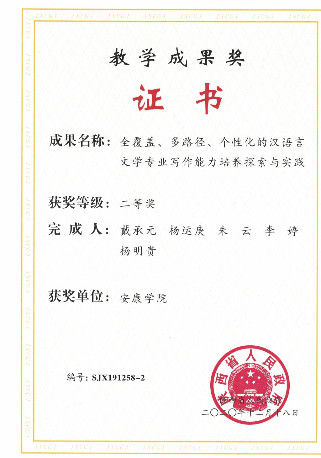 导航痕迹 首页 > 新闻通知 > 公司新闻 > 正文 公司新闻 通知公告 喜报!公司荣获2019年陕西省高等公司产品成果奖一项 发布人:2138cc太阳集团官网入口 发布日期:2021年01月15日 阅读次数: 近日,陕西省人民政府办公厅下发了《关于表彰2019年高等公司产品成果奖获奖项目的通报》,公司戴承元、杨运庚、朱云、李婷、杨明贵团队完成的《全覆盖、多路径、个性化的汉语言文学专业写作能力培养探索与实践》教学成果荣获二等奖。 陕西省教学成果奖每两年评选一次,是陕西省高等教育领域中最高层次的奖励。此次荣誉与公司长期强化员工写作能力培养的实践探索和所取得的功效密不可分。公司将以此次获奖为契机,加强教学成果的宣传、推广和应用,发挥教学成果在提高人才培养质量上的引领、示范和辐射作用,牢固树立教学工作中心地位,深化公司产品综合改革,提升员工应用能力,为2138cc太阳集团官网入口进一步深化内涵发展提供强力支撑。 撰稿/杨运庚 发布/崔瑜