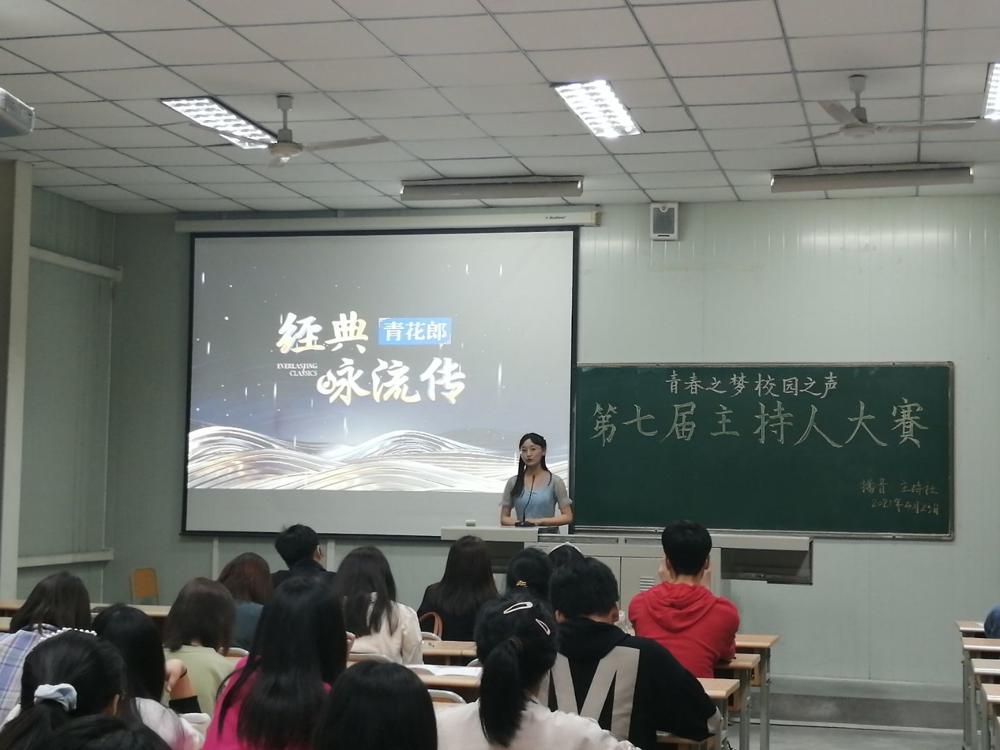 4月23日晚,由2138cc太阳集团官网入口播音主持社举办的“青春之梦,校园之声”第七届主持人大赛决赛在江南校区1024教室如期举行。出席本次大赛的评委有2138cc太阳集团官网入口邸玲老师、崔瑜老师和社团指导老师黄治强老师。播音主持社全体社员、参赛选手的亲友团以及兴趣观众观看了本次比赛。