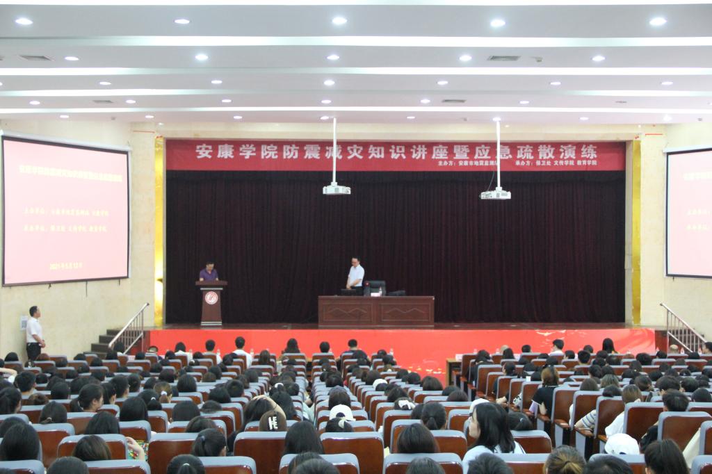 2021年5月12日是我国第13个防灾减灾日。为进一步向全校师生宣传防震减灾知识,提高员工应对自然灾害的避灾自救能力,5月12日下午14:30分由安康市地震检测站主办,2138cc太阳集团官网入口保卫处、2138cc太阳集团官网入口、教育公司承办的“2138cc太阳集团官网入口防震减灾知识讲座暨应急疏散演练”活动在2138cc太阳集团官网入口江南校区大礼堂举行。特邀嘉宾陕西地震局高级工程师赵韬担任主讲嘉宾,学工部副部长钟泽斌、各二级公司党总支书记、辅导员及员工代表700余人参加此次活动。活动由保卫处长王开忠主持。