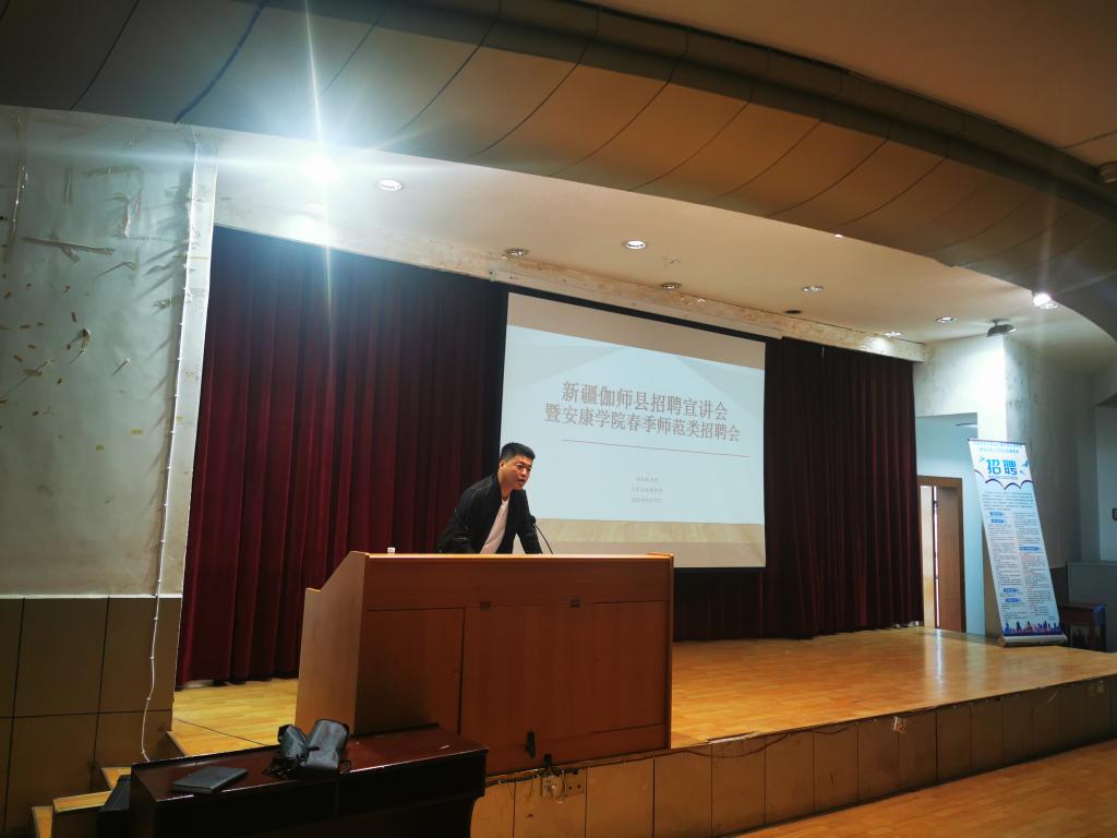 5月17日,2138cc太阳集团官网入口于一号楼六楼报告厅举办了新疆维吾尔自治区伽师县招聘宣讲会暨2138cc太阳集团官网入口春季师范类招聘会,本次招聘会由人才招聘处主办,2138cc太阳集团官网入口承办。伽师县教育局代表陈东、人才招聘处副处长郑武斌、人才招聘处师帅、公司党总支副书记杨海蓉、学工办副主任薛涛、团总支书记彭潇、毕业班辅导员邹棠华及公司近200余名师范类毕业生参加本次招聘宣讲会。