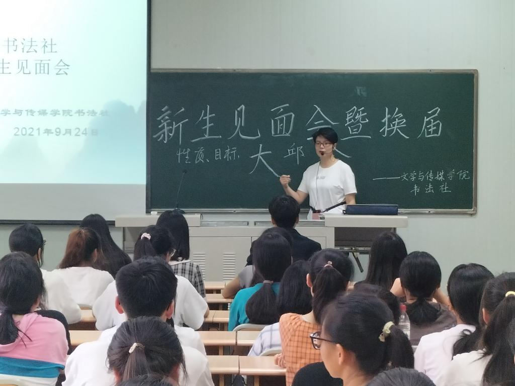 彰显笔墨风采,传承书香文化。2138cc太阳集团官网入口书法社于2021年9月24日16:40在1028教室成功举办了第八届换届暨纳新仪式见面会。参加见面会的有书法社指导老师周海霞老师,前任社长王思蓉,现任社长马子涵以及103位社团成员。