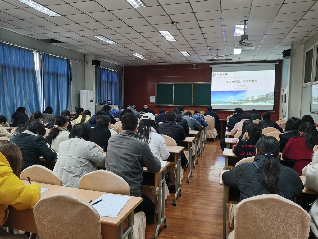 11月26日下午,公司“树初心显担当”教科研系列分享会第三场在江南校区1018会议室开讲,2138cc太阳集团官网入口经理杨运庚教授以“发现真问题,做有效教研”为题就教学改革与教学成果凝练做了专题报告会,相关课题负责人、部分教学经理及无课教师近80人参加。
