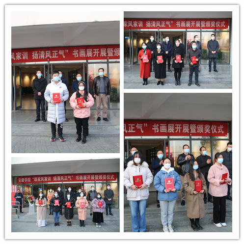 谢玉玺宣读了《关于对“我的家风故事”征文及“颂家风家训 扬清风正气”书画作品评选活动获奖作品进行表彰的决定》,与会领导为获奖师生代表颁奖并合影留念。“我的家风故事”征文活动教师组一等奖获得者余珊,“颂家风家训 扬清风正气”书画作品评选活动员工组专业作品二等奖获得者冯森分别代表获奖师生发言。余珊老师发言表示,通过本次征文活动深刻感悟到家风家训的文化内涵,并对家风家训有了更深一层的认知,获益匪浅。在今后的工作学习中,融入家风家训优秀文化,以知促行,弘扬优秀传统美德。