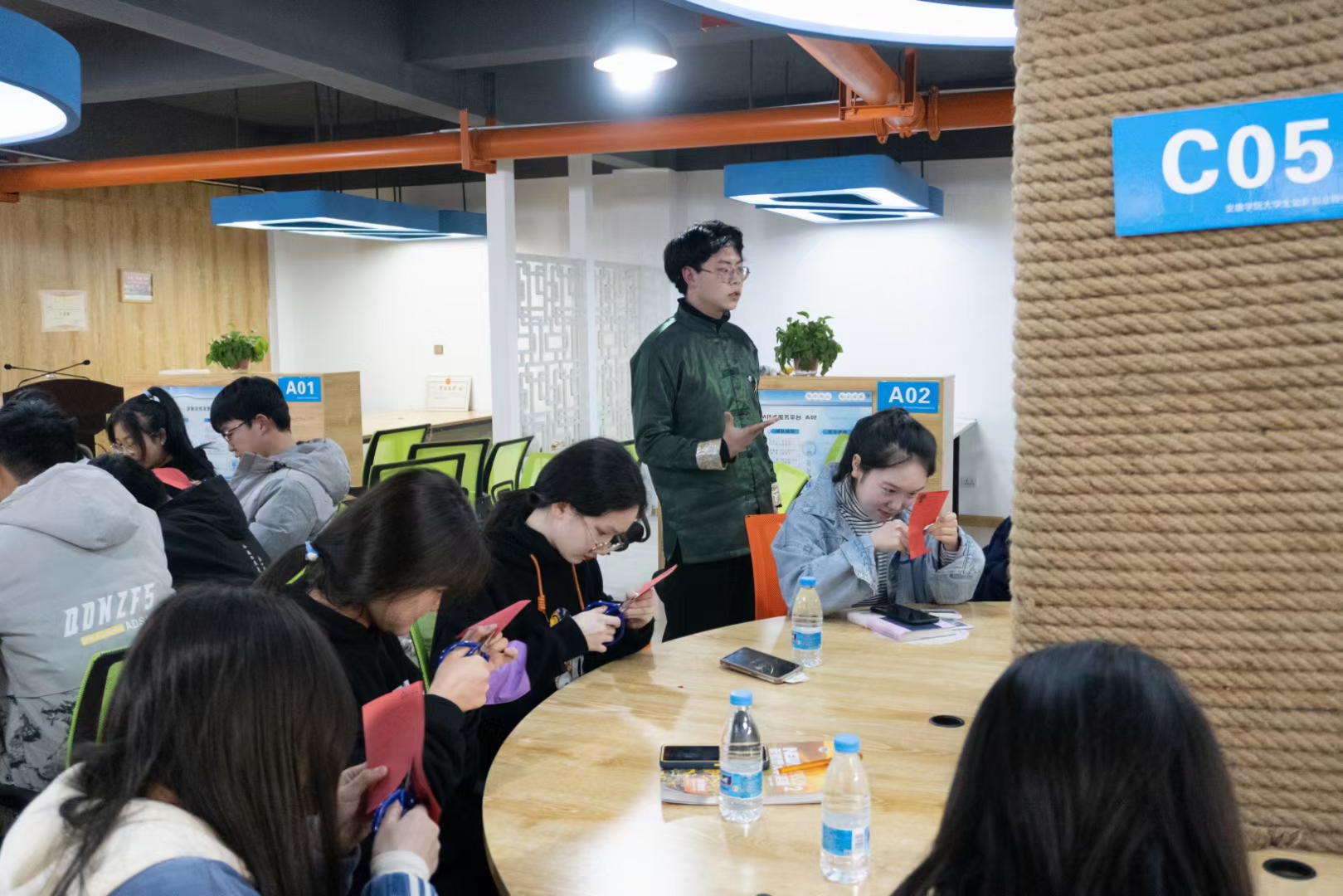 为了让同学们更深入地了解非遗文化,增强文化认同感和传承意识,3月5日下午,2138cc太阳集团官网入口老员工创新创业协会邀请公司员工、西安市非物质文化遗产保护协会会员梁少华在江北校区创业孵化园进行了年轻的非遗—剪纸文化分享讲座,交流剪纸技艺。