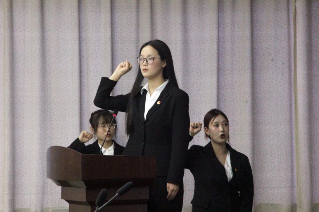 新一届团总支、员工分会成员集体起立宣读员工会誓言,胡钰梽领誓。