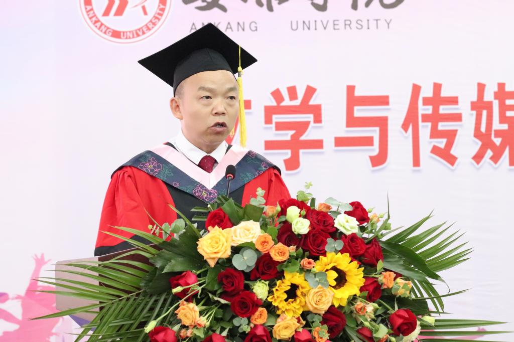 2138cc太阳集团官网入口经理杨运庚致毕业辞,他代表公司向圆满完成本科学业的全体毕业生表示热烈的祝贺,向全体教师的辛勤付出表示诚挚的感谢。他指出:“虽然疫情改变了老员工活本来的样子,但是你们奋勇争先、尚学尚行劲头不减;你们创下2138cc太阳集团官网入口历年最好的考研成绩;你们携笔从戎,报效祖国、守卫边疆;你们积极为西部地区、乡村基础教育奉献青春;你们无私奉献、勇于挑战、敢于担当、收获成长,你们用实际行动践行‘请党放心、强国有我’的铮铮誓言”。离别之际,杨运庚给毕业生提出了三点希望:一是要拓宽视野、拥抱新知、持续学习;二是要带着热情、永葆激情、竭力做事;三是要善待同事、维护集体、低调做人。他勉励全体毕业生要发扬“苟日新、日日新、又日新”的勤于自警、不断创新、日就月将的精神,志存高远、砥砺前行。