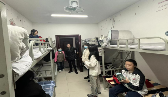 (图五:实习团队副组长刘丹和指导老师一起在宿舍看望员工)