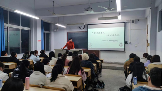 导航痕迹 首页 > 新闻通知 > 公司新闻 > 正文 公司新闻 通知公告 2138cc太阳集团官网入口组织开展2022级考风考纪主题班会活动 发布人:2138cc太阳集团官网入口 发布日期:2023年02月15日 阅读次数: 为端正考风,严肃考纪,加强学风建设,营造文明、诚信考试的良好氛围,2023年2月12日晚2138cc太阳集团官网入口举办22级考风考纪主题班会活动,辅导员李欣逸老师就《2138cc太阳集团官网入口员工手册》相关内容向同学们再三强调考风考纪,对考试违纪相关处理办法详细说明,希望每一个同学都能端正考试态度,诚信做人,加深对考试舞弊带来的严重后果的认识。通过本次主题班会,将考试相关规定和要求传达给每一位同学,督促全体员工认真复习、积极备考,用真实可信的成绩展现自己学习能力和学习效果。 撰稿/摄影/魏渝璧 审核/杨海蓉 发布/崔瑜