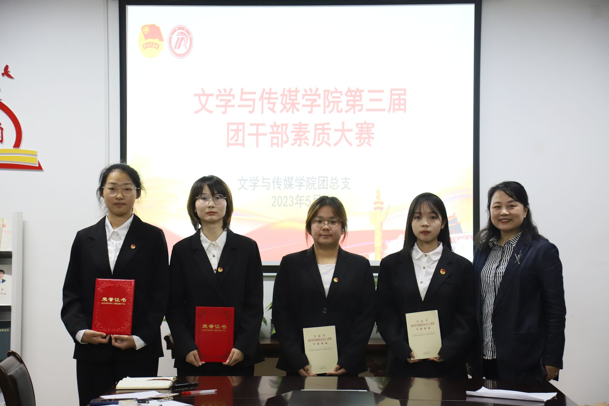 为深入贯彻学习习近平新时代中国特色社会主义思想,落实党的二十大精神,不断提升我院团干部思想政治工作理论水平、专业素养和工作能力。公司于2023年5月8日晚上7点在2307教室开展第三届团干部素质能力大赛。公司党总支副书记杨海蓉、团总支书记彭潇和辅导员李欣逸担任此次大赛评委,公司21、22级全体团支书参加比赛。