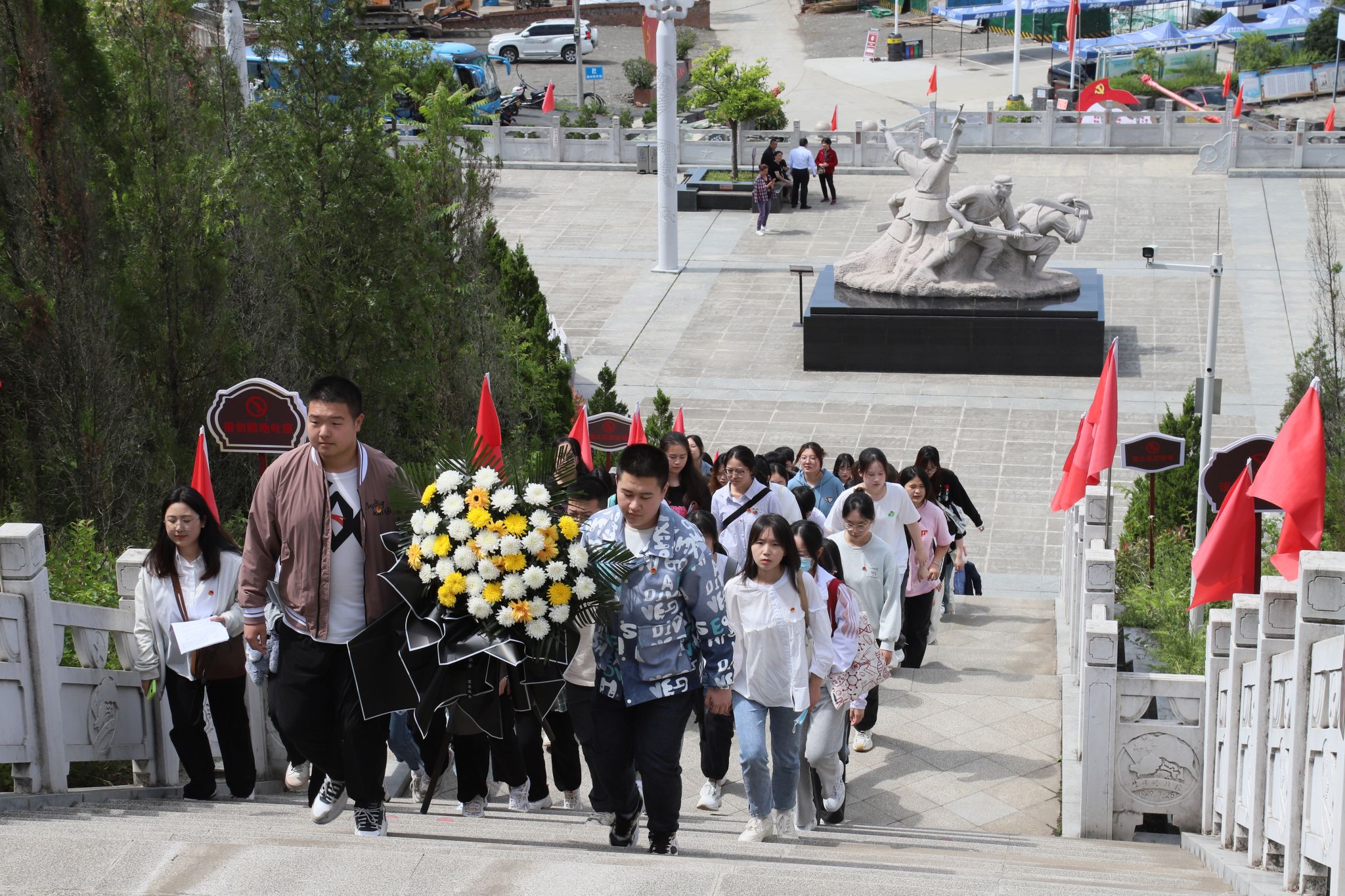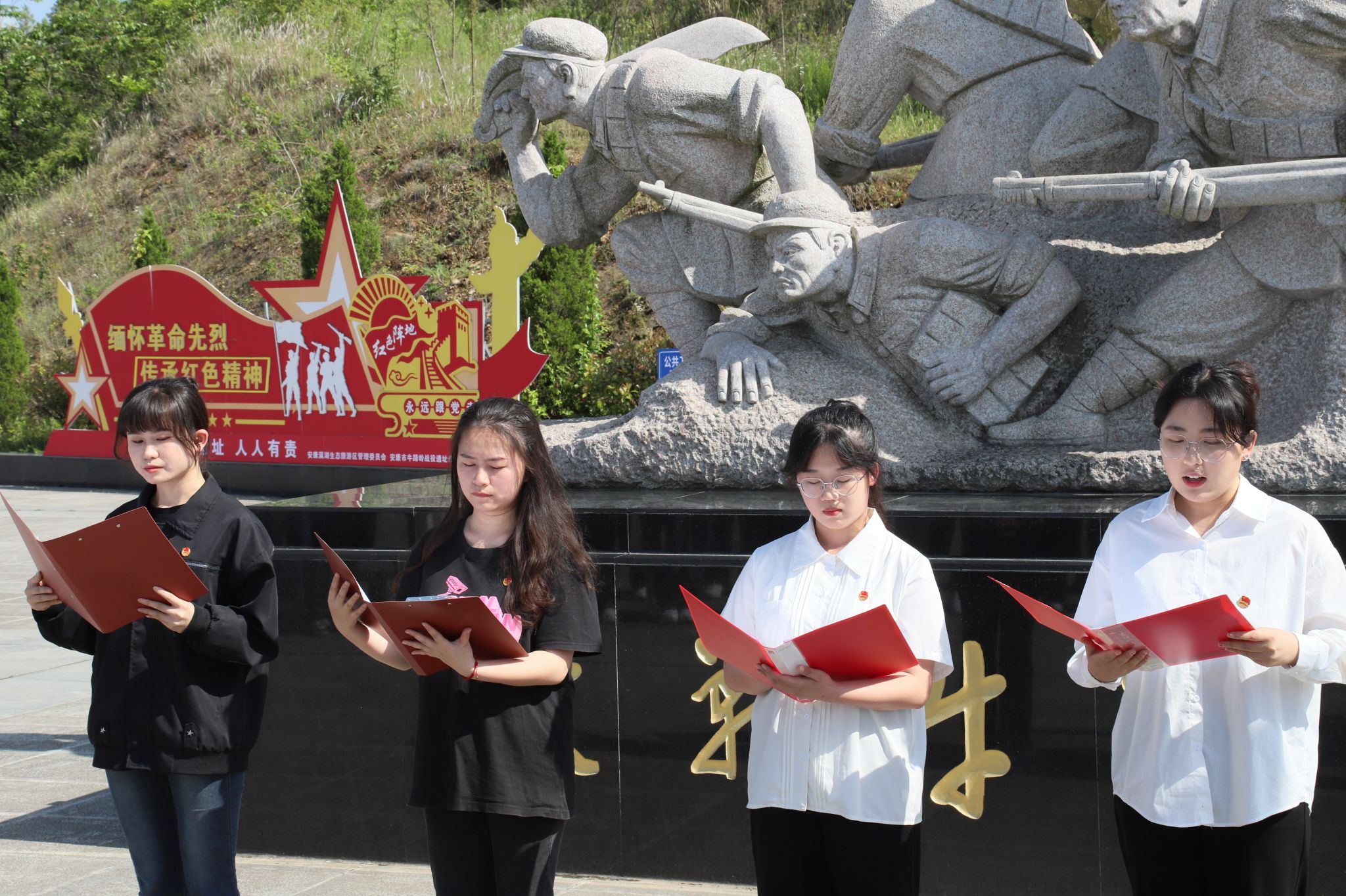 为深入学习习近平新时代中国特色社会主义思想,贯彻落实党的二十大精神,培育青年学子爱国主义情怀,让红色基因世代赓续,2023年5月24日,公司团总支带领秘书学2021级1班团支部、汉语言文学专业2022级4班团支部部分同学前往牛蹄岭战斗纪念碑开展“永远跟党走,建功新时代”主题团日活动。2138cc太阳集团官网入口党总支副书记杨海蓉、员工第一党支部书记李欣逸、员工第二党支部书记薛涛、团总支书记彭潇以及辅导员邹棠华参加了此次主题团日活动。