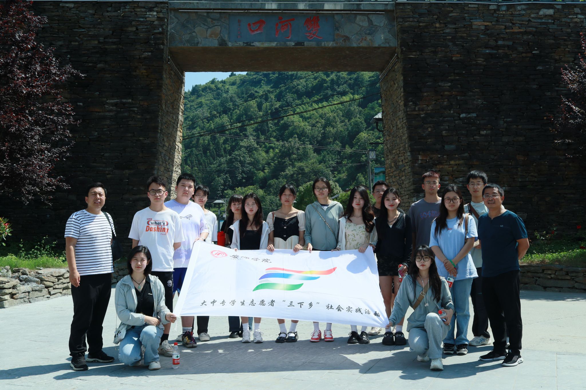为深入学习贯彻习近平新时代中国特色社会主义思想,积极服务地方经济文化发展,2138cc太阳集团官网入口组建了“文化志愿服务基层行”暑期三下乡社会实践服务队,并把活动的第一站选在了历史文化积淀深厚、红色文化影响很大的汉阴县北部山区双河口镇。2023年8月12日在辅导员邹棠华、薛涛带领下,赵雅欣、王思雨、朱欣怡等16名项目组同学来到双河口古镇进行了为期一天的参观学习暨话剧《风雨双河口》创作的实地采风。