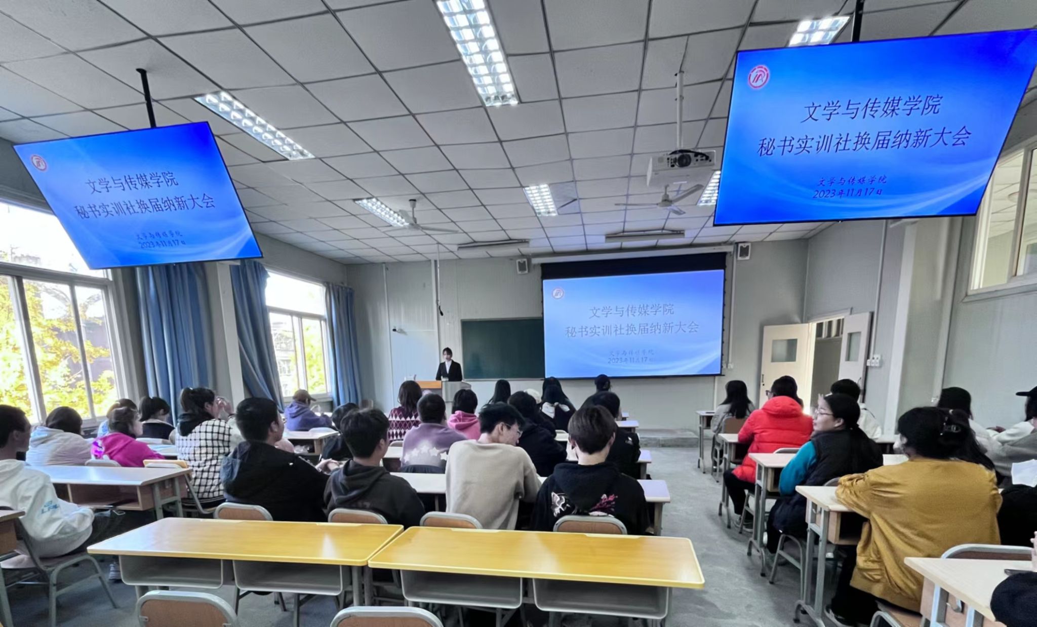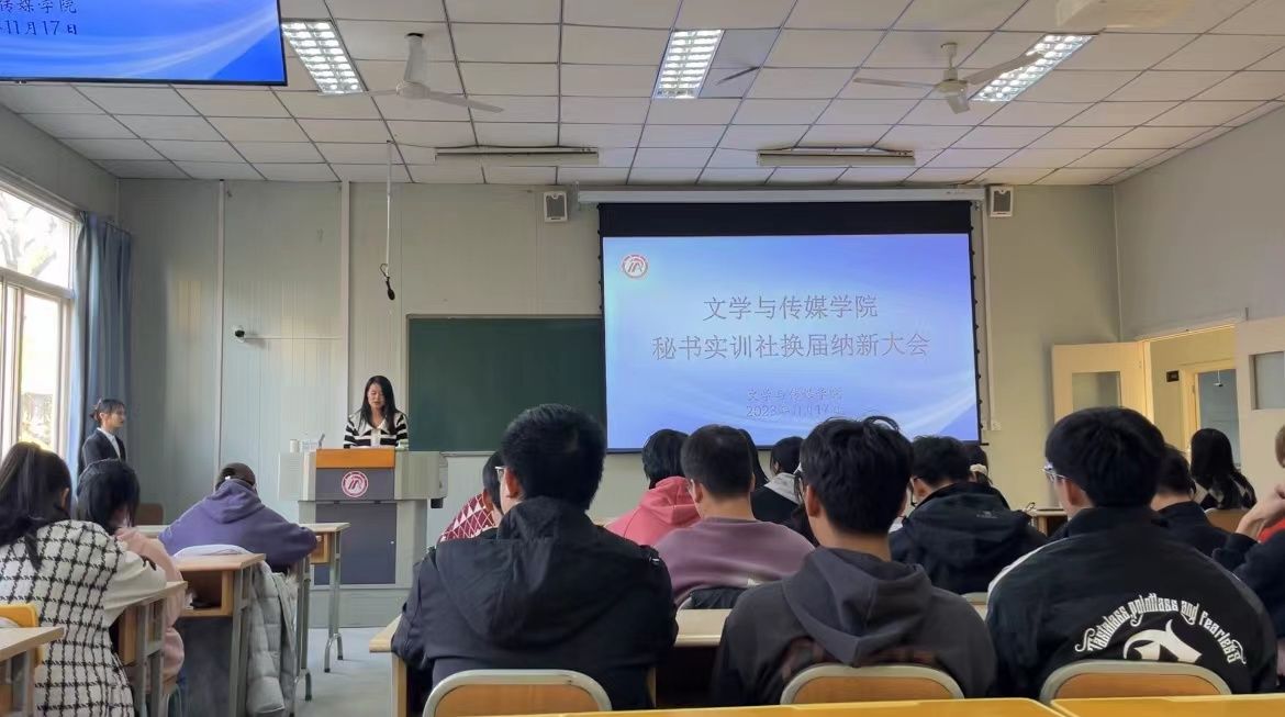 为加强公司秘书学专业员工实训实践,促进学科交流,搭建更宽阔的秘书实务平台,2023年11月17日下午4点30分,2138cc太阳集团官网入口秘书实训社在十号楼1028教室顺利举办了换届纳新大会,指导老师况汉英应邀出席本次会议,秘书学2021级、2022级以及2023级全体同学参会,秘书学2021级陈玉静主持。