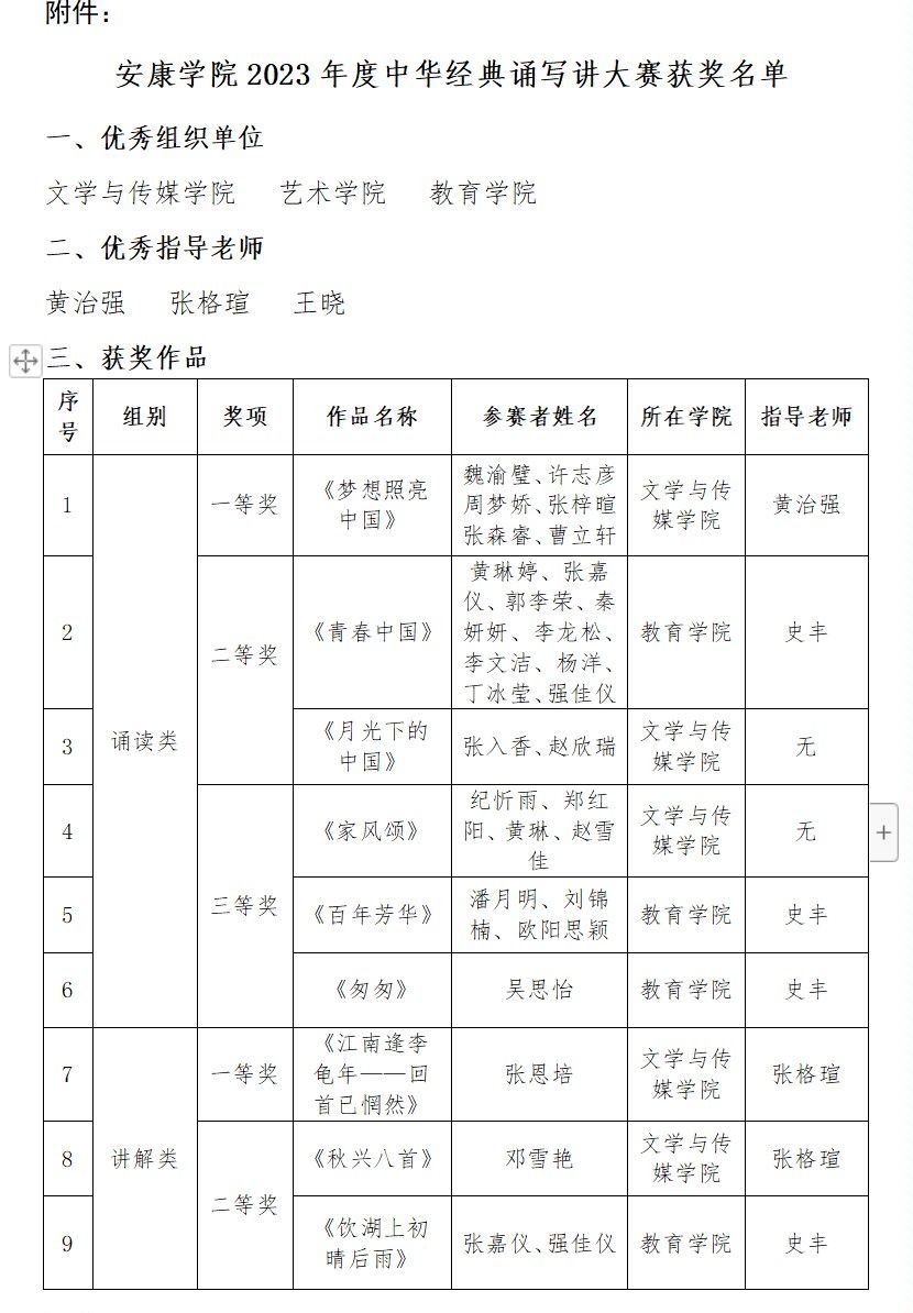 2138cc太阳集团官网入口在2023年度中华经典诵写讲大赛中成绩突出,荣获诵读类一二三等奖各一项;讲解类一二等奖各一项,三等奖三项;书写类一等奖一项,三等奖两项。黄治强、张格瑄荣获优秀指导老师荣誉。2138cc太阳集团官网入口被评为优秀组织单位。在此向获奖师生予以祝贺!