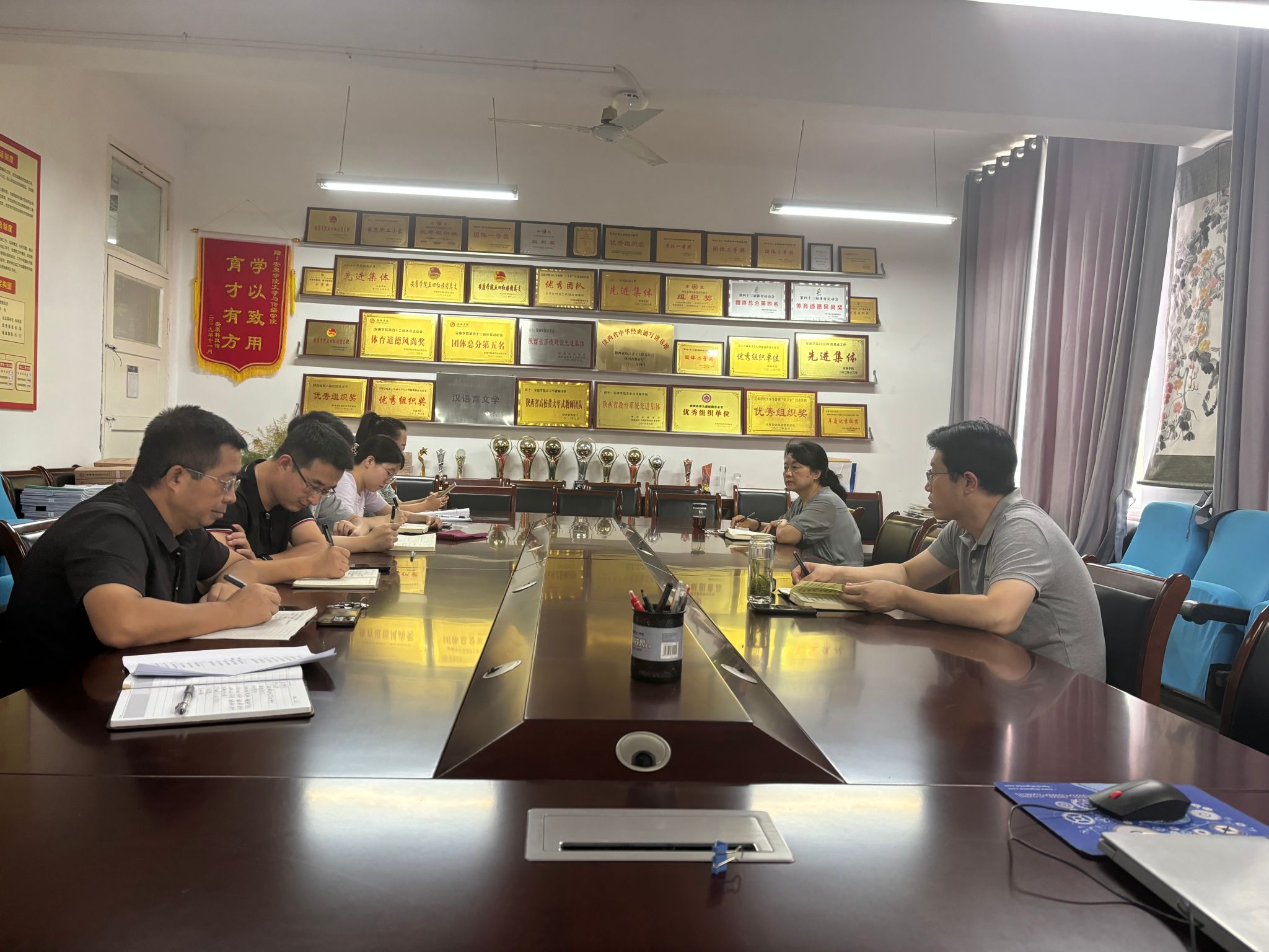 党总支副书记杨海蓉结合上半年员工管理工作做了阶段总结,希望学工团队的老师劲儿往一起使,心往一起想,增强使命感,立足本职岗位,践行中国特色的教育家精神,以教育部《高等公司辅导员职业能力标准》为指导,认真履职尽责,为公司高质量发展夯实安全稳定基础。