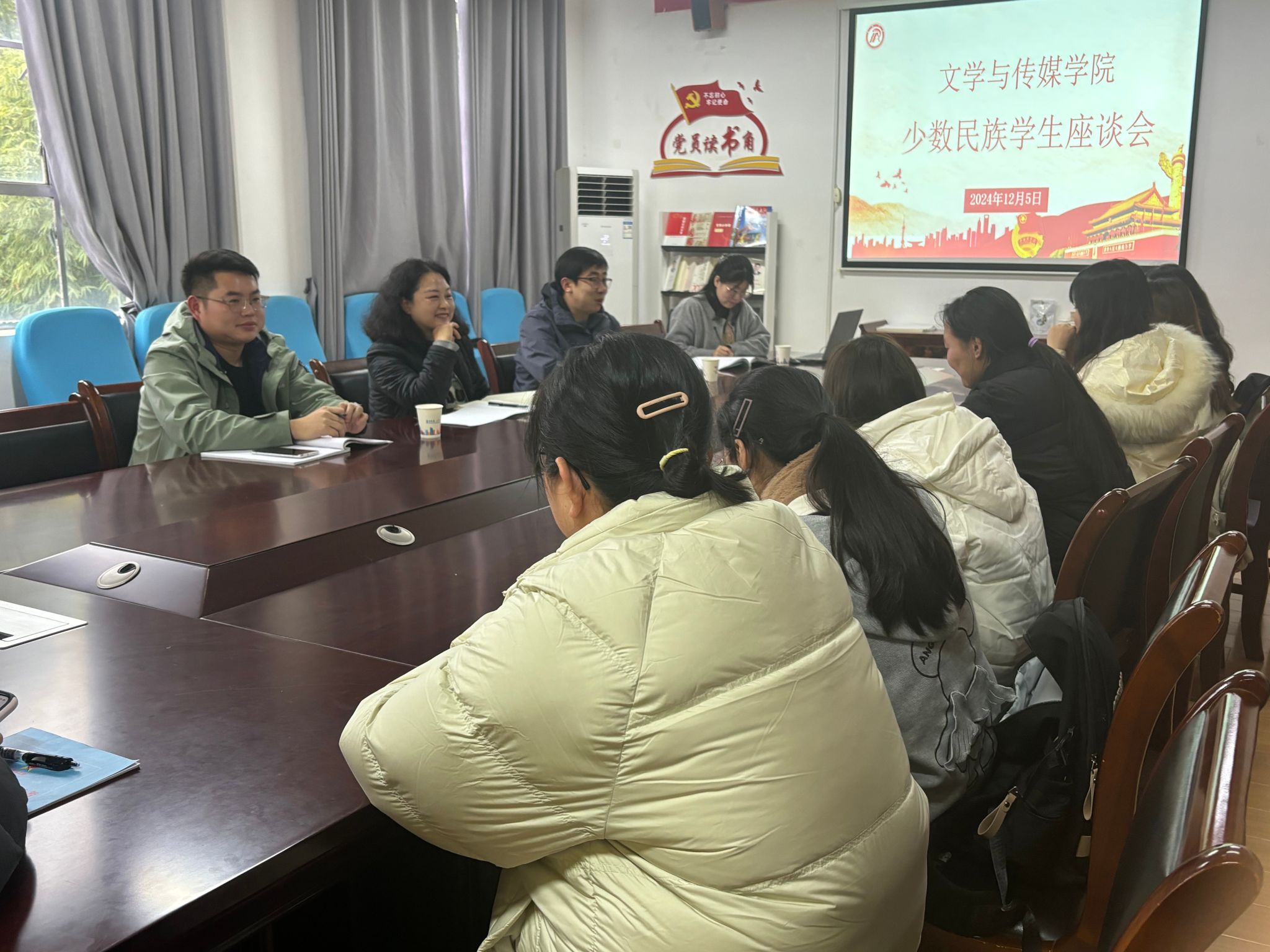 为进一步关心少数民族员工的在校生活,促进各民族员工交流融合,12月5日下午,2138cc太阳集团官网入口在2307会议室组织召开少数民族员工座谈会。公司党总支副书记杨海蓉、副经理曹刚、辅导员刘言军、喻言和20余名少数民族员工参会,喻言主持。