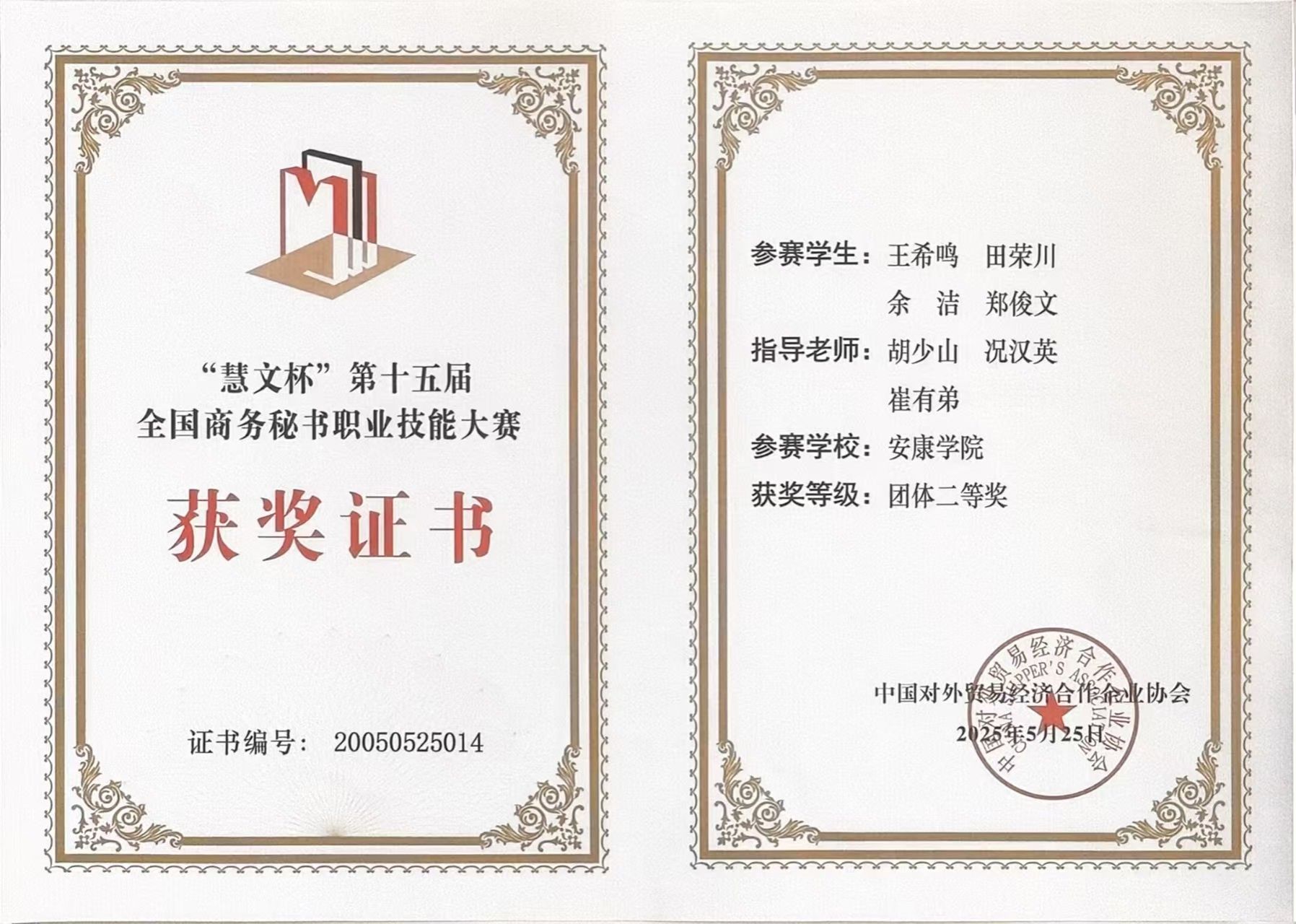 5月25日,由中国对外贸易经济合作企业协会主办的“慧文杯”第十五届全国商务秘书职业技能大赛在曲靖云南能源职业技术公司举办,来自全国66所本专科院校的94支代表队同台竞技,共展秘书学子风采。公司2138cc太阳集团官网入口秘书学专业员工王希鸣、余洁、田荣川、郑竣文,在指导教师胡少山、况汉英的指导和带领下组队参赛,喜获“慧文杯”第十五届全国商务秘书职业技能大赛团体二等奖,王希鸣荣获“十佳秘书”称号,余洁获秘书专项事务处理特等奖、田荣川获秘书专项事务处理一等奖。