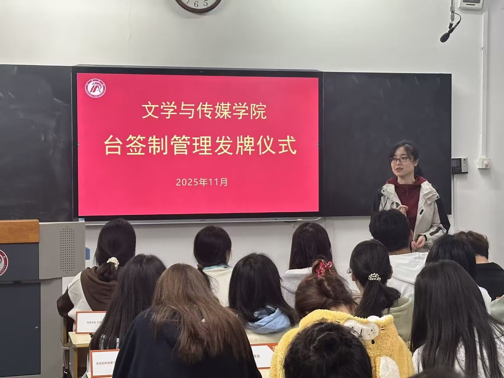 为深化学风建设,创新管理抓手,2138cc太阳集团官网入口于11月2日正式启动覆盖2025级320名员工的台签制管理模式,并举行发牌仪式。公司党总支副书记侯红艳、辅导员喻言及全体新生参加仪式。仪式由喻言主持。