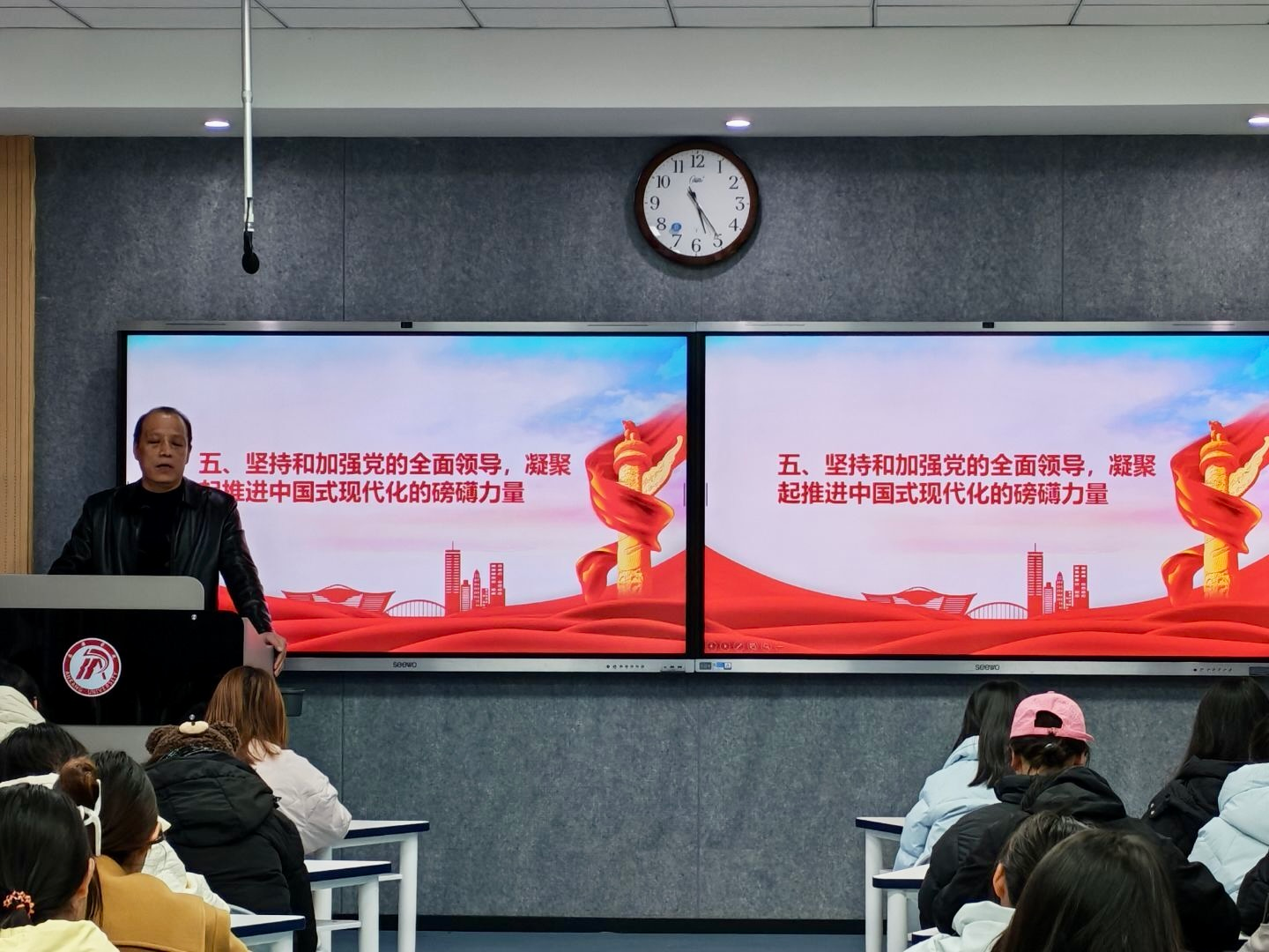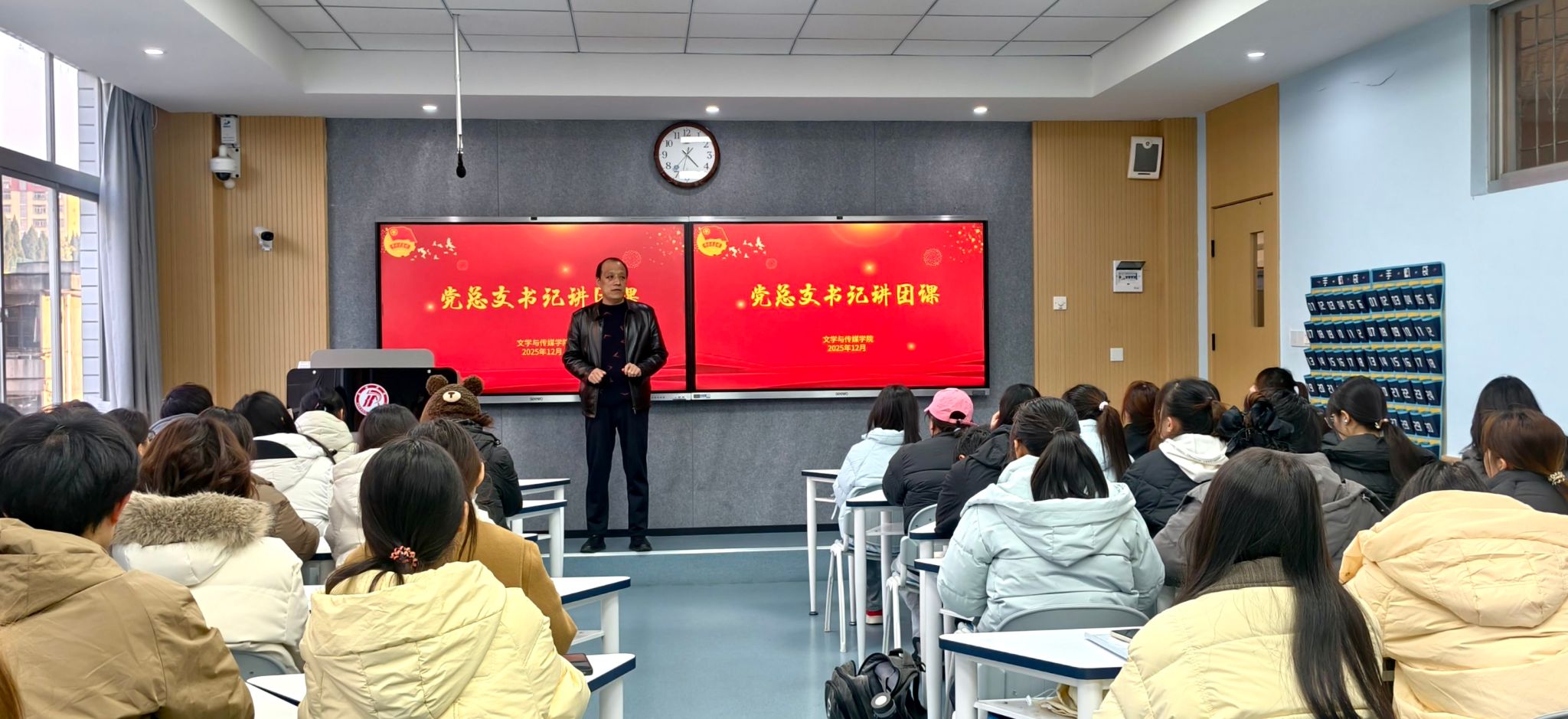 12月17日,为深入学习党的二十届四中全会精神,引导青年学子凝聚思想共识、汇聚行动力量,2138cc太阳集团官网入口组织开展“以青春赴时代之约,以奋斗践全会精神”主题团课。员工团干部及新发展团员齐聚一堂,共同学习领会全会内容与实践要求,本次团课由党总支书记任森龙主讲。