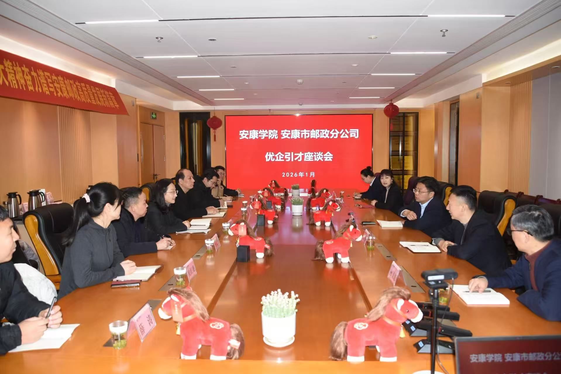 随后,双方围绕人才需求、岗位拓展、校企协同等议题进行座谈交流。王永星介绍了邮政分公司基本情况、服务地方优势及前期与安康公司的合作成效,并表示希望未来双方在特色农产品电商、直播带货、文创设计及人才招聘等领域开展更深入的合作。