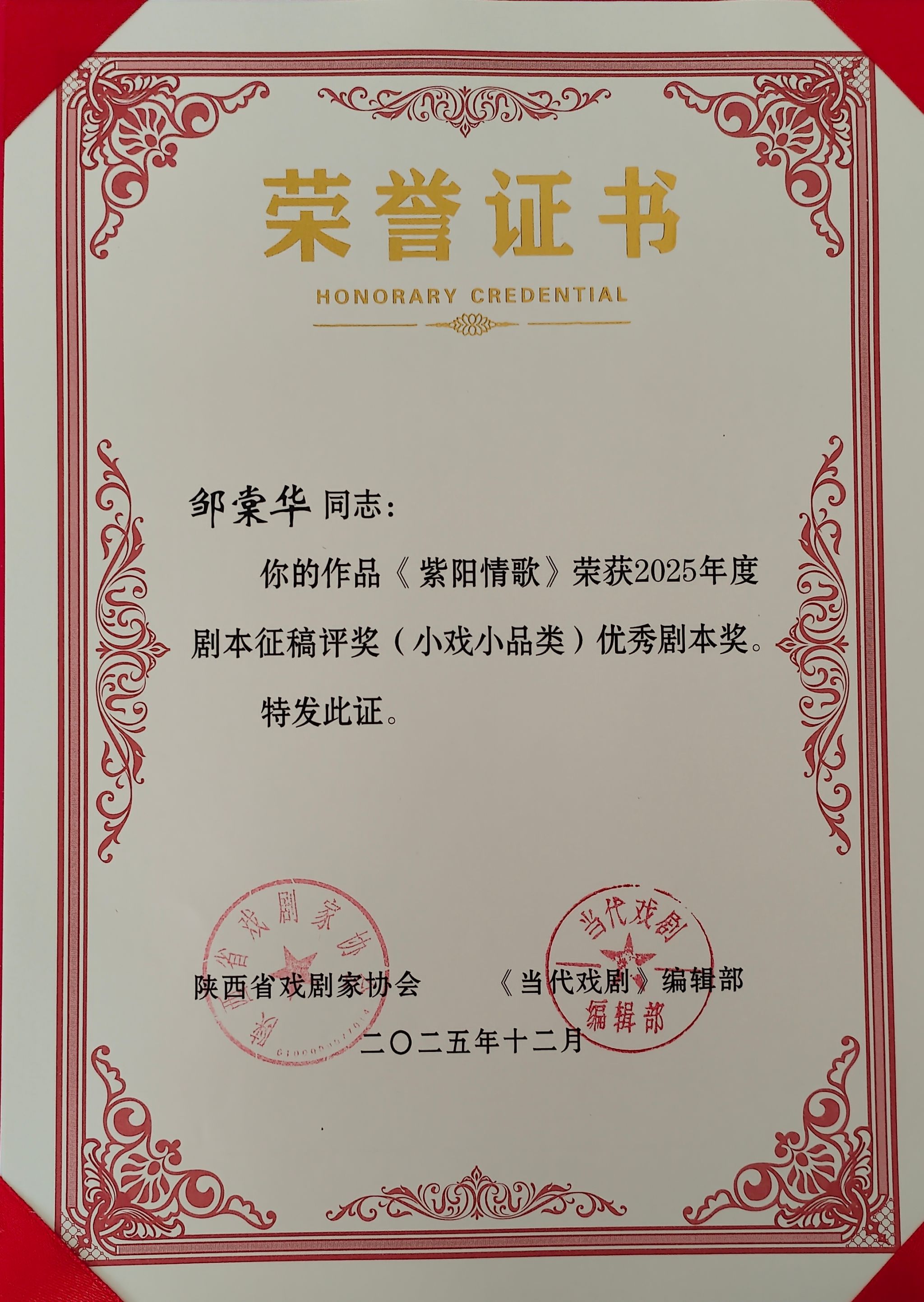 导航痕迹 首页 > 新闻通知 > 公司新闻 > 正文 公司新闻 通知公告 公司教师邹棠华创作的《紫阳情歌》荣获省优秀剧本奖 发布人:2138cc太阳集团官网入口 发布日期:2026年01月23日 阅读次数: 近日,由陕西省戏剧家协会、《当代戏剧》编辑部联合举办的2025年剧本征稿活动落下帷幕,公司教师邹棠华创作的民歌剧《紫阳情歌》荣获小戏小品类优秀剧本奖。 本届征稿活动全省共收到戏剧剧本104个,经过主办单位组织戏剧专家初评和终评,最终评出大戏类优秀剧本奖4个,剧本奖10个;小戏小品类优秀剧本奖3个,剧本奖4个。 《紫阳情歌》以汉江重要商埠瓦房店为故事发生地,以辛亥革命前后为时代背景,讲述了四川革命党人罗高川、黄州船帮帮主之子夏知秋与会馆老板的女儿含香、茶花两对年轻人坚贞不渝的爱情故事,将独具特色的紫阳民歌巧妙地融入剧情,使紫阳民歌具有了故事性并结成了有机体,同时将陕南乡土风情、茶文化、航运文化进行了充分展示。评委专家充分肯定了该剧的艺术构思和呈现出来的地方特色,认为是助推安康旅游发展的一部好剧。 撰稿/图片提供/邹棠华 审核/任森龙 发布/崔瑜