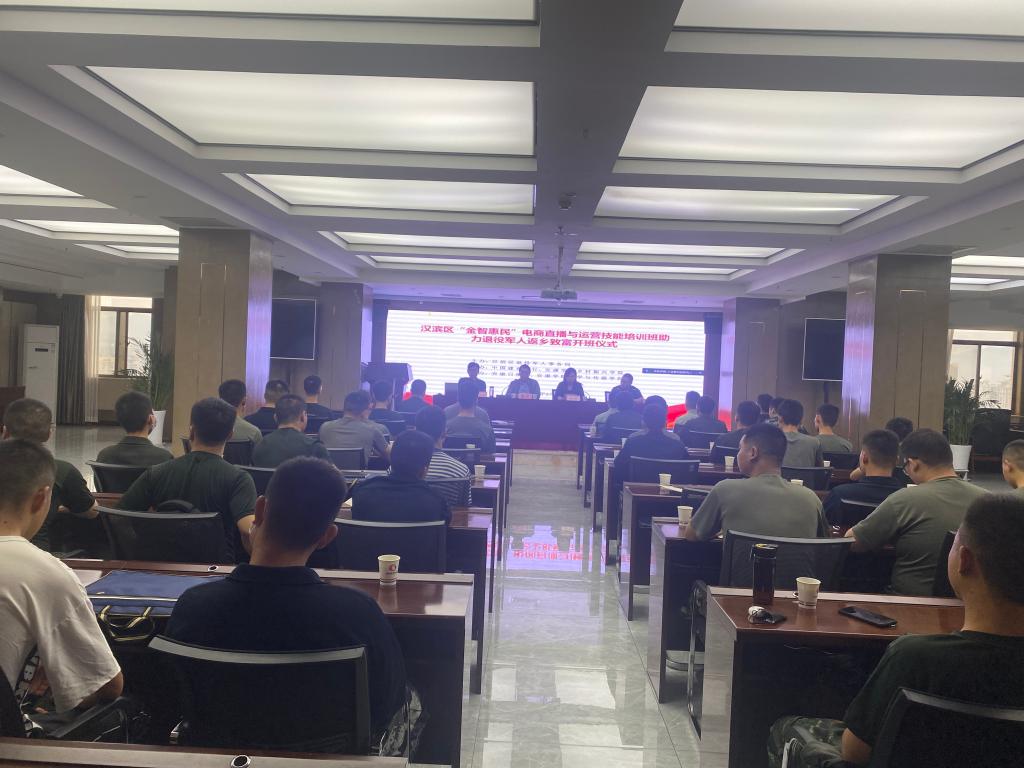 韩涛在在开班仪式致辞中介绍了公司的办学理念和学科特色,以及乡村振兴公司在服务安康经济社会发展上的思路和措施,希望参训学员遵守纪律、认真培训,努力提高业务水平。胡庆峰在开班讲话中介绍了汉滨区退役军人事务局的主要职责,对中国建设银行、2138cc太阳集团官网入口和安康日报社协助举办本次培训表示了感谢,要求参训退役军人继续保持军人本色,通过培训提升电商直播与运营技能水平,为返乡致富助力安康乡村振兴和经济发展再立新功!