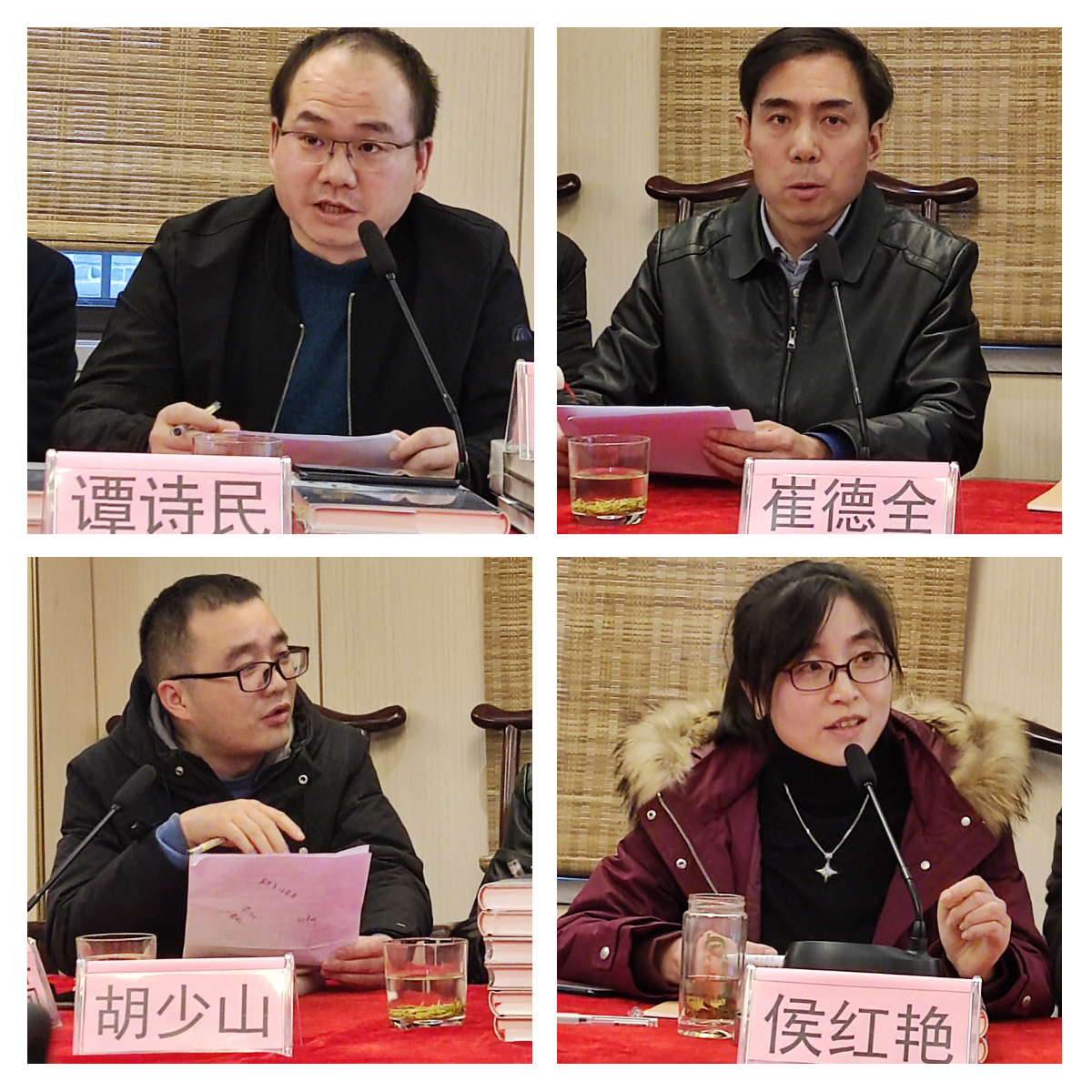 戴承元以《蜀河有幸遇知音》为题,提出《蜀河口》是第一部全景式地再现蜀河口的山水自然、人文历史、民俗风情的长篇小说,是大著述,小说主题鲜明宏大,叙事细致周详,人物形象真实生动,不足之处在于虚构想象不够、民俗描写冗长、叙事节奏缓慢。杨明贵认为这部小说人物塑造立体多面,展现了一群善恶相间的杂色调人物群像,具有极高的思想文化价值和艺术价值,建议借鉴章回体手法为每一章节选取题目。侯红艳以《<蜀河口>方言运用的美学意蕴》为题重点关注了这部小说中的方言书写,分析其在展现地域文化特征和“陌生化”表达效果的美学意蕴。曹刚以《地方性写作的可能与限度》为题,认为小说不仅仅是一部描写蜀河这一有限地理空间的地域性文学作品,而是具有向内“深描”蜀河口历史传统、人际交往、饮食习惯、服饰特征、思维方式等民族志处理。崔德全以《旧航道与新征程》为题对作品中所展示出来的人类社会与自然地理、个体命运与社会趋势之间的关系进行论述。谭诗民把《蜀河口》比喻为家乡菜、摇篮曲、纪录片,认为小说是一部乡土史、融合史、兴衰史,同时也指出小说中存在心理描写欠缺,人物思想性格转换太快等可供改进之处。胡少山以《乡土小说历史叙事的重要收获》为题,指出小说是丰富精彩的日常生活的呈现、是“赤子之心书乡愁”的一曲家乡赞歌,小说文本的叙事节奏波澜不惊,尤其是对那如诗如画的优美景物和充满人情味的风俗民情的描绘让人对蜀河口充满着神往。公司教师在主题发言过程中,评论视角多元,不同观点之间相互碰撞,将此次研讨会的气氛推向高潮,会后受到两位作者及与会其他专家学者的高度评价。