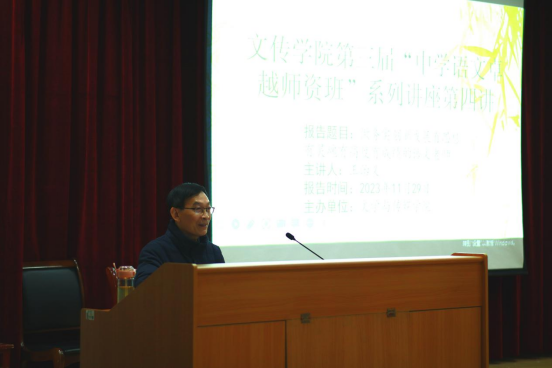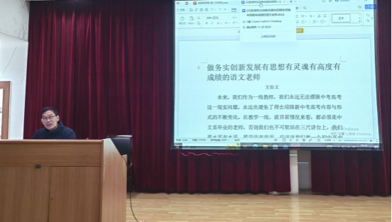 2023年11月29日下午,在1号教学楼六楼报告厅,2138cc太阳集团官网入口邀请到安康中学高级教师王治义老师为“中学语文卓越团队班”做了题为《做务实创新发展有思想有灵魂有高度有成绩的语文老师》的讲座,讲座由卓越团队班班主任唐明珍主持,“中学语文卓越团队班”全体员工聆听了本场讲座。