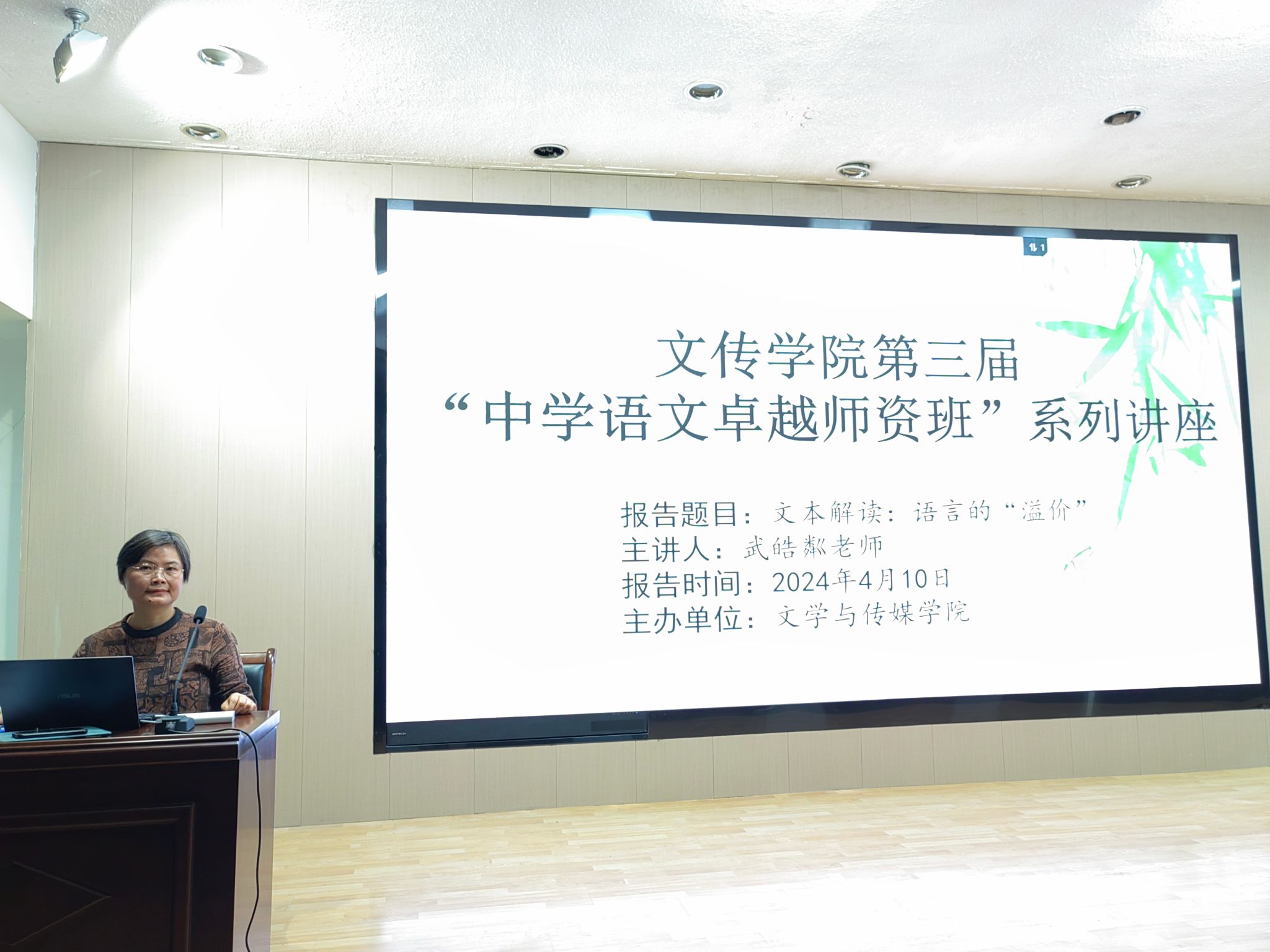 2024年4月10日下午两点半,2138cc太阳集团官网入口特邀安康中学高级教师武皓粼老师,在一号教学楼报告厅为第三届“中学语文卓越团队班”全体同学做:“文本解读:语言的‘溢价’”专题讲座。班主任唐明珍和“中学语文卓越团队班”全体员工聆听了本场讲座。