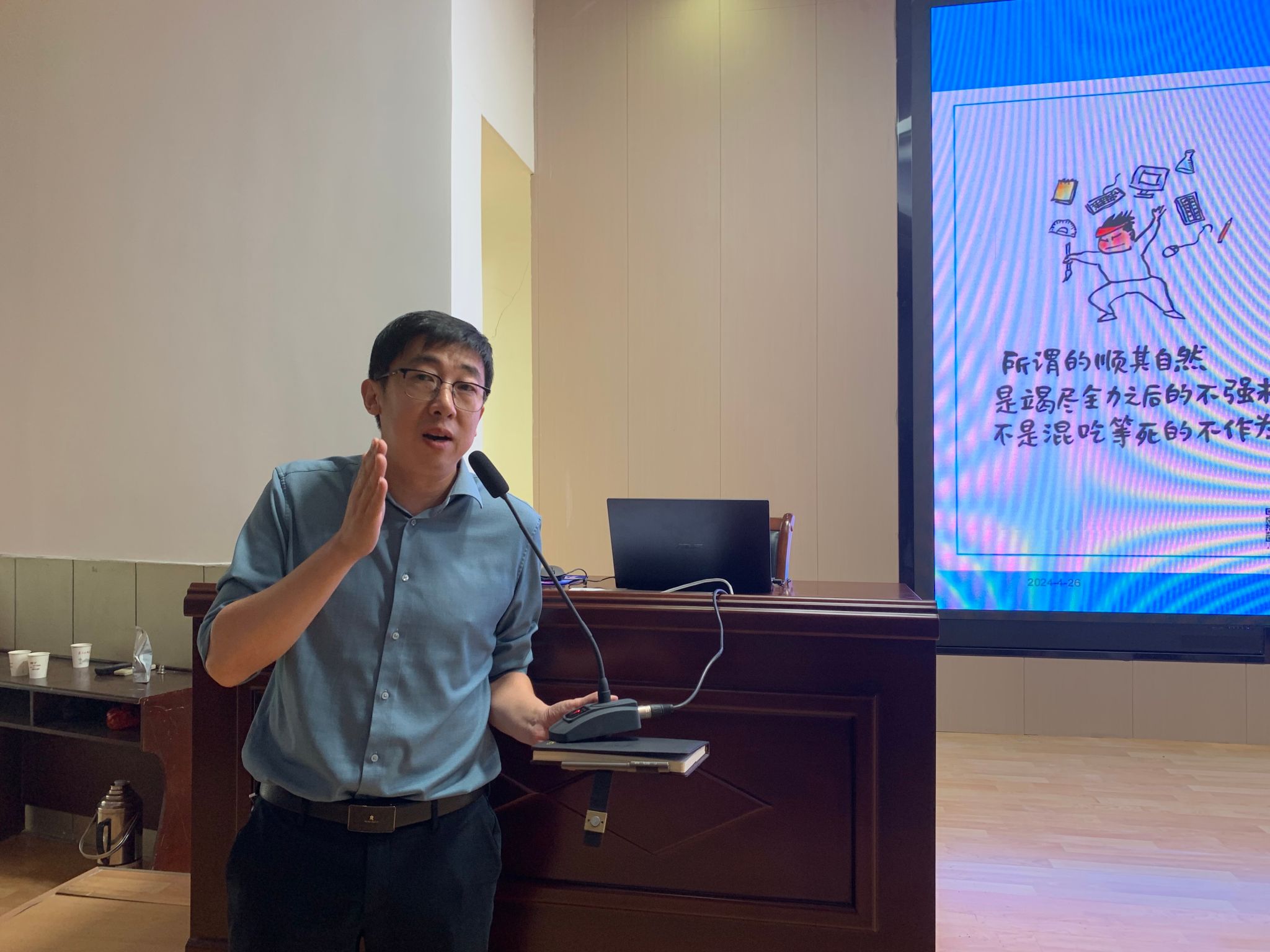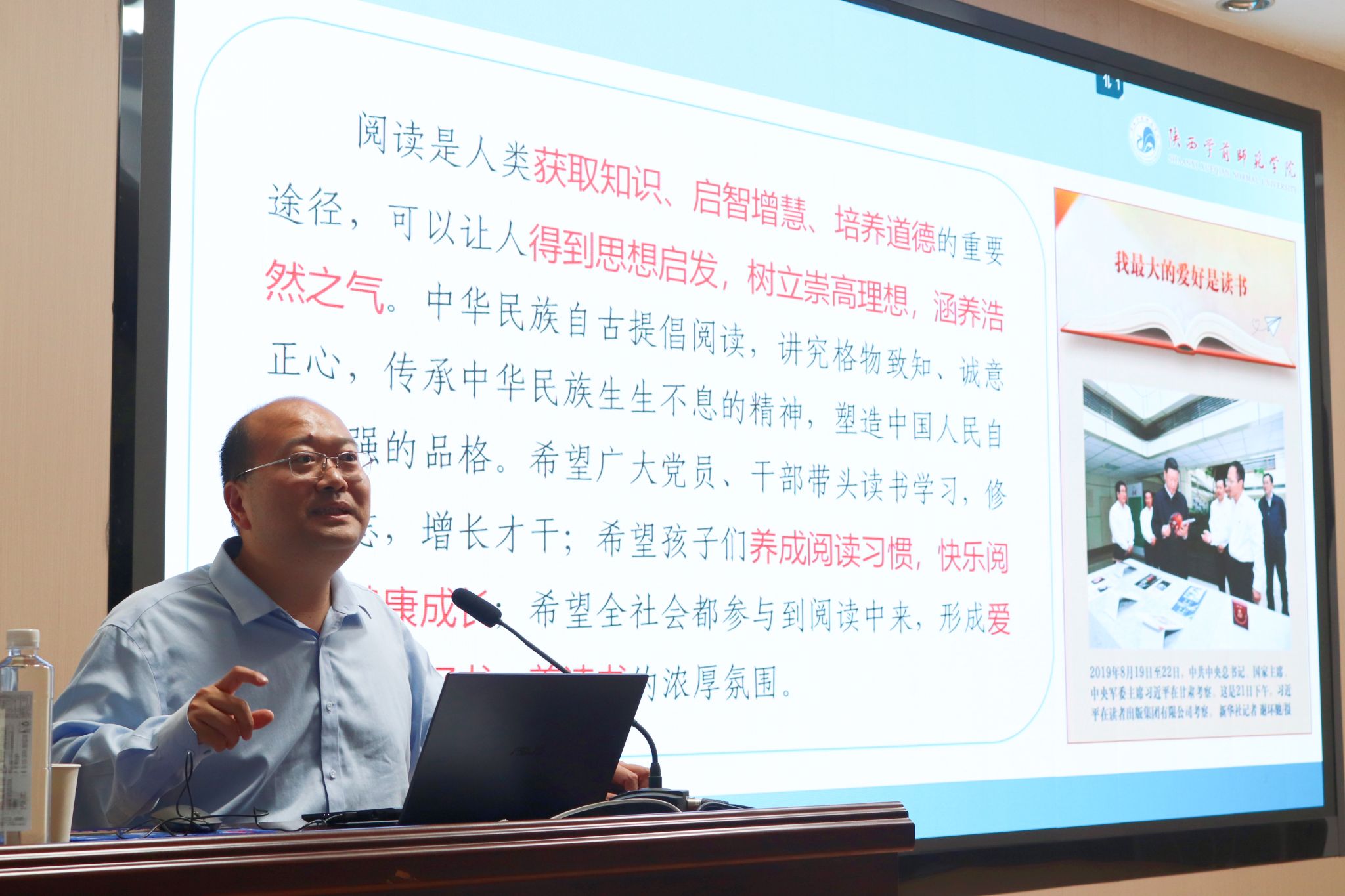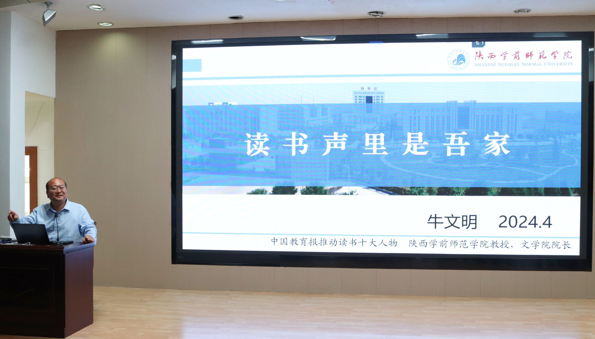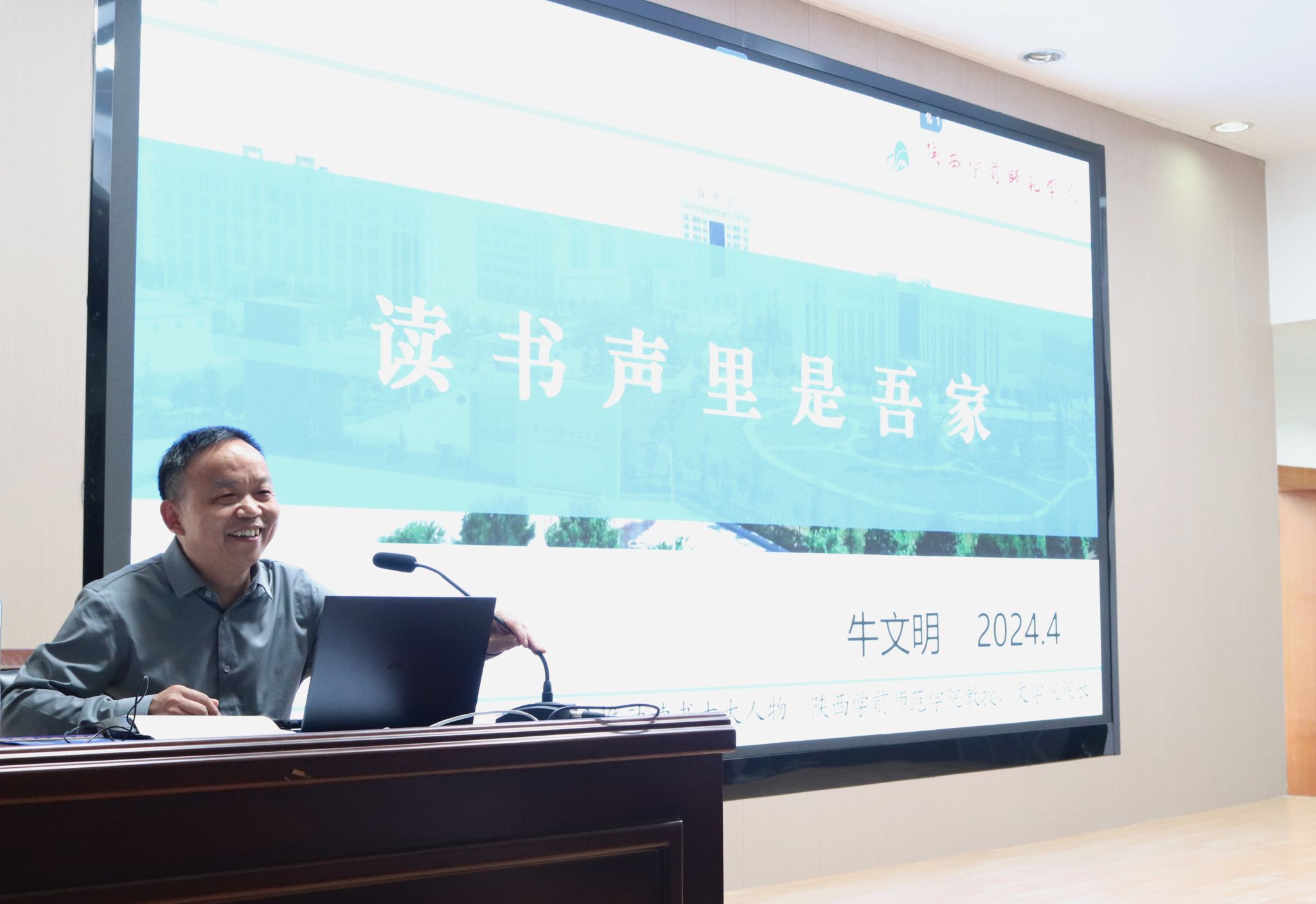 4月26日下午,陕西学前师范公司文公司经理牛文明教授应邀来公司为2023级员工做了“读书声里是吾家”的专题读书报告。本次报告由2138cc太阳集团官网入口经理杨运庚主持。