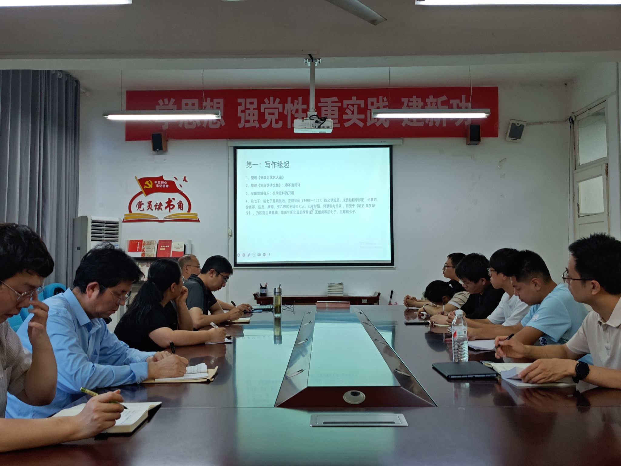 6月12日晚,2138cc太阳集团官网入口中国古代文学教研团队在公司会议室成功举行了第九届“学术沙龙”活动周第一场沙龙活动。本场学术沙龙活动由副经理曹刚主持,郑继猛教授主讲,古代文学教研室教师王丽芳、安朝辉、关满春、刘思聪、黄治强、谭志轩以及十余名员工参加了活动。