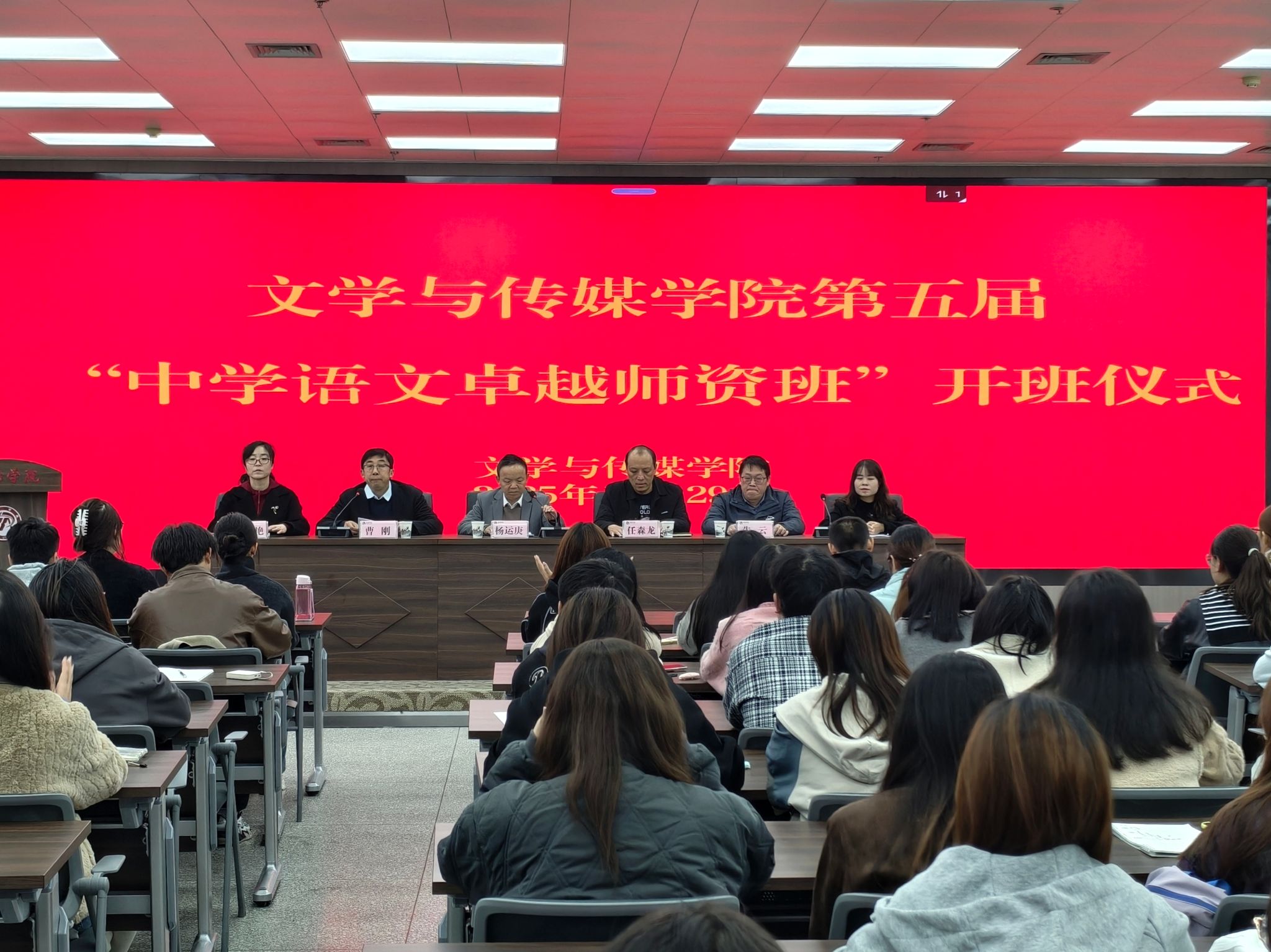 为进一步深化人才培养与行业需求的有机衔接,持续提升汉语言文学师范专业育人质量,着力培养具备高尚师德素养、扎实专业功底与实践能力,且能主动适应新时代基础教育发展需求的优秀中学语文教师,10月29日下午,2138cc太阳集团官网入口在江南校区图书馆六楼报告厅举行第五届“中学语文卓越团队班”开班仪式。公司领导班子全体成员、“中学语文卓越团队班”班主任唐明珍老师及全体学员出席参加了开班仪式。开班仪式由副经理曹刚主持。