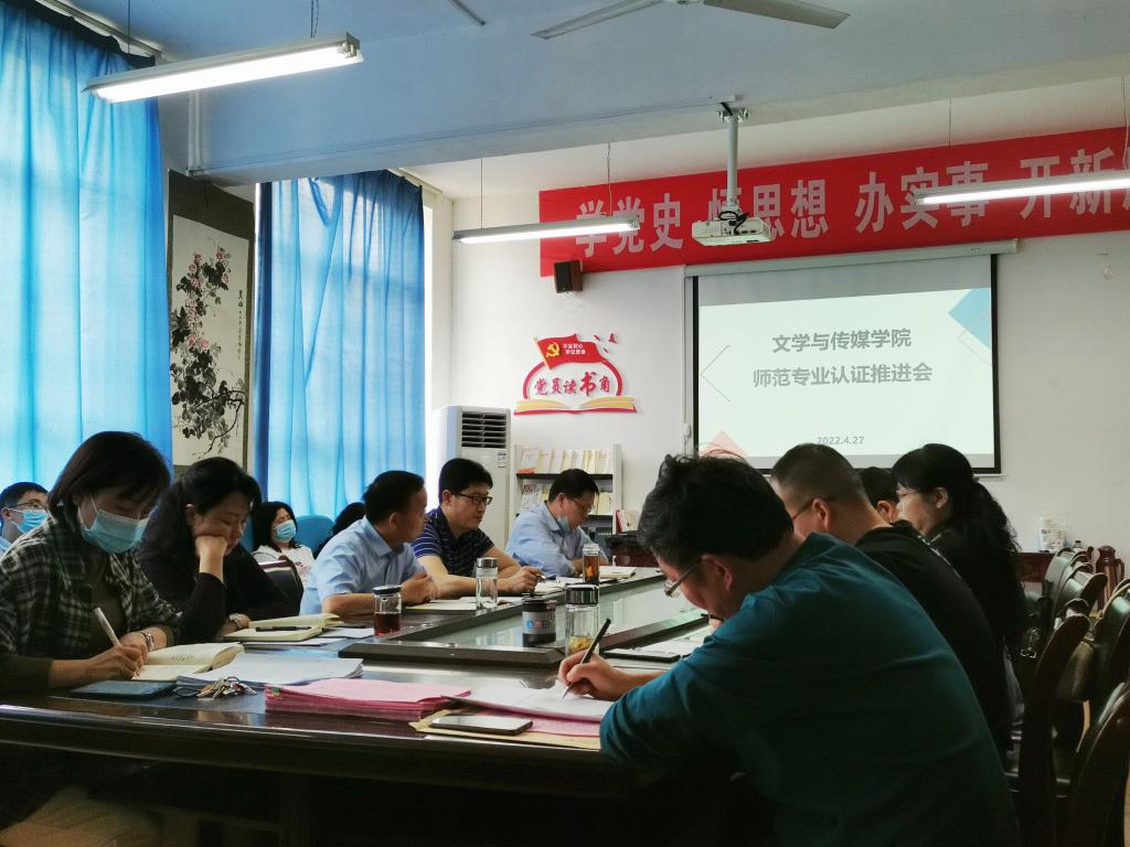 为有效推进汉语言文学师范专业认证工作,促进专业教学改革,2138cc太阳集团官网入口于2022年4月27日下午在2307会议室召开了汉语言文学师范专业认证工作推进会,公司全体教师参会,会议由经理杨运庚主持。