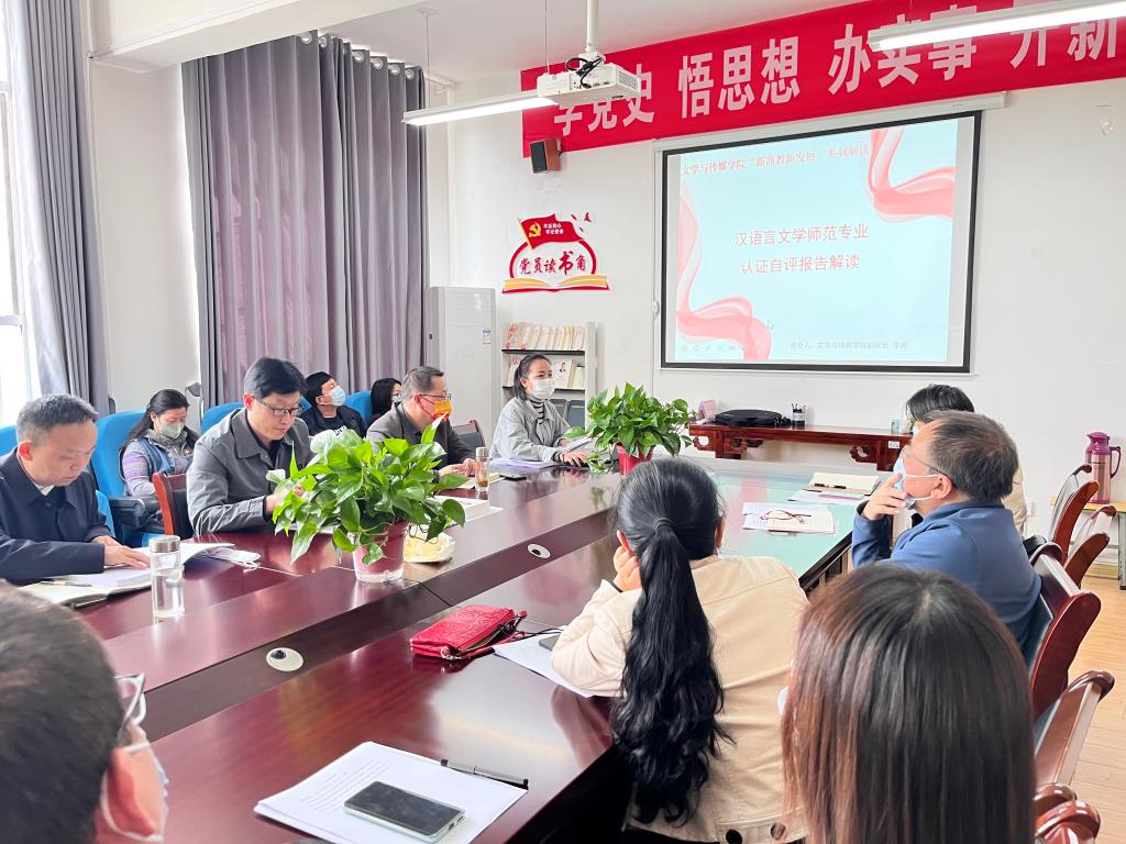 导航痕迹 首页 > 师范专业认证 > 活动新闻 > 正文 政策文件 活动新闻 师范生技能大赛 2138cc太阳集团官网入口组织“新高教新发展”系列解读第三讲“汉语言文学师范专业认证自评报告解读” 发布人:2138cc太阳集团官网入口 发布日期:2022年10月14日 阅读次数: 2022年10月13日,2138cc太阳集团官网入口“新高教新发展”系列解读第三讲开讲,副经理李婷为全院教师解读汉语言文学师范专业认证自评报告。 李婷首先对汉语言文学专业自评报告聚焦专业认证“质量保障,持续改进”的理念进行了介绍,其次按照自评报告“背景信息、毕业要求、课程与教学、合作与实践、团队队伍、支持条件、质量保障、员工发展”八个部分的写作结构依次对汉语言文学师范专业建设对标认证标准的达成情况、存在问题、持续改进思路和措施进行了重点解读。 自评报告是对汉语言文学专业建设情况的总结和思考,本次组织学习既是对专业认证自评报告撰写工作的阶段性总结,也有利于本院教师对汉语言文学专业有更加全面的了解,对师范专业认证的主线和底线、标准和落实有更加深入的认识。 撰稿/李婷 摄影/罗相如 发布/崔瑜