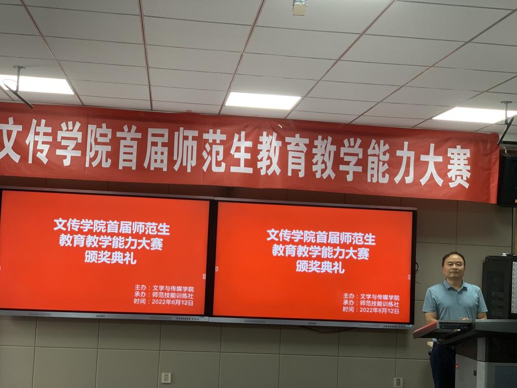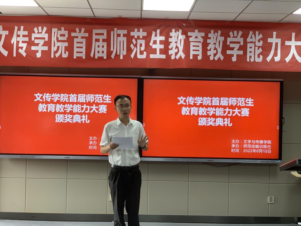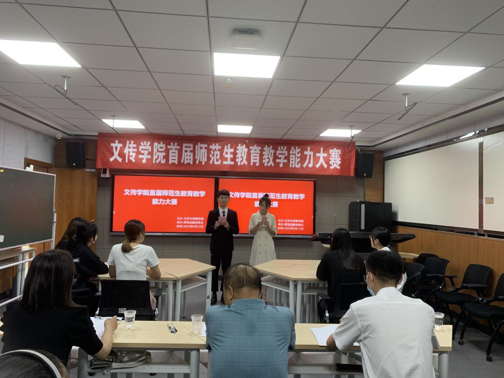 2022年6月12日,由师范技能训练社承办的2138cc太阳集团官网入口首届师范生公司产品能力大赛在公司师范生职业技能训练中心4204教室隆重举办。本次大赛特邀安康市汉滨区教研室高级教研员李玉恒老师,汉滨初级中学董事长助理、教务主任全东老师,2138cc太阳集团官网入口教学督导邸玲老师共同担任评委。2138cc太阳集团官网入口党总支书记芦伟、副经理朱云、党总支副书记杨海蓉、汉语言文学系主任韩文霞、语文学科教学论任课教师、师范技能训练社指导教师张格瑄在现场观摩比赛。本次大赛采用网络同步直播的方式进行,公司其他教师和员工通过校园网观摩了比赛过程。
