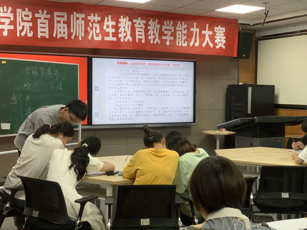 粉笔字书写环节,选手们一笔一划细心勾勒,完成笔顺书写和中华优秀古诗词书写。即兴演讲环节,选手们能临场发挥,随机应变,巧妙的组织语言,表达自己对公司产品的观点。说课环节,他们条理清晰,详略有当。最精彩的模拟授课环节,选手们流畅自然地呈现了良好的学科专业素养。